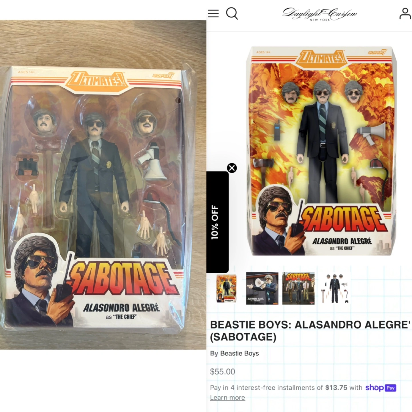 Selling a Beastie Boys Alasondro Alegré action figure, also known as "The Chief" from Sabotage! It's still in its original packaging and in great condition. A perfect collectible for any Beastie Boys fan! Originally priced at $55