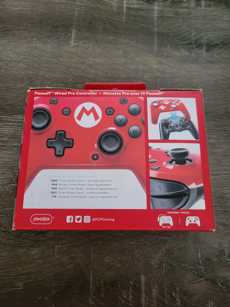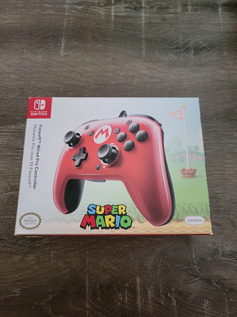 Selling a PDP Faceoff Wired Pro Controller featuring a Super Mario design. It's compatible with the Nintendo Switch. The controller is in great condition and comes with its original box. Perfect for any Super Mario fan!