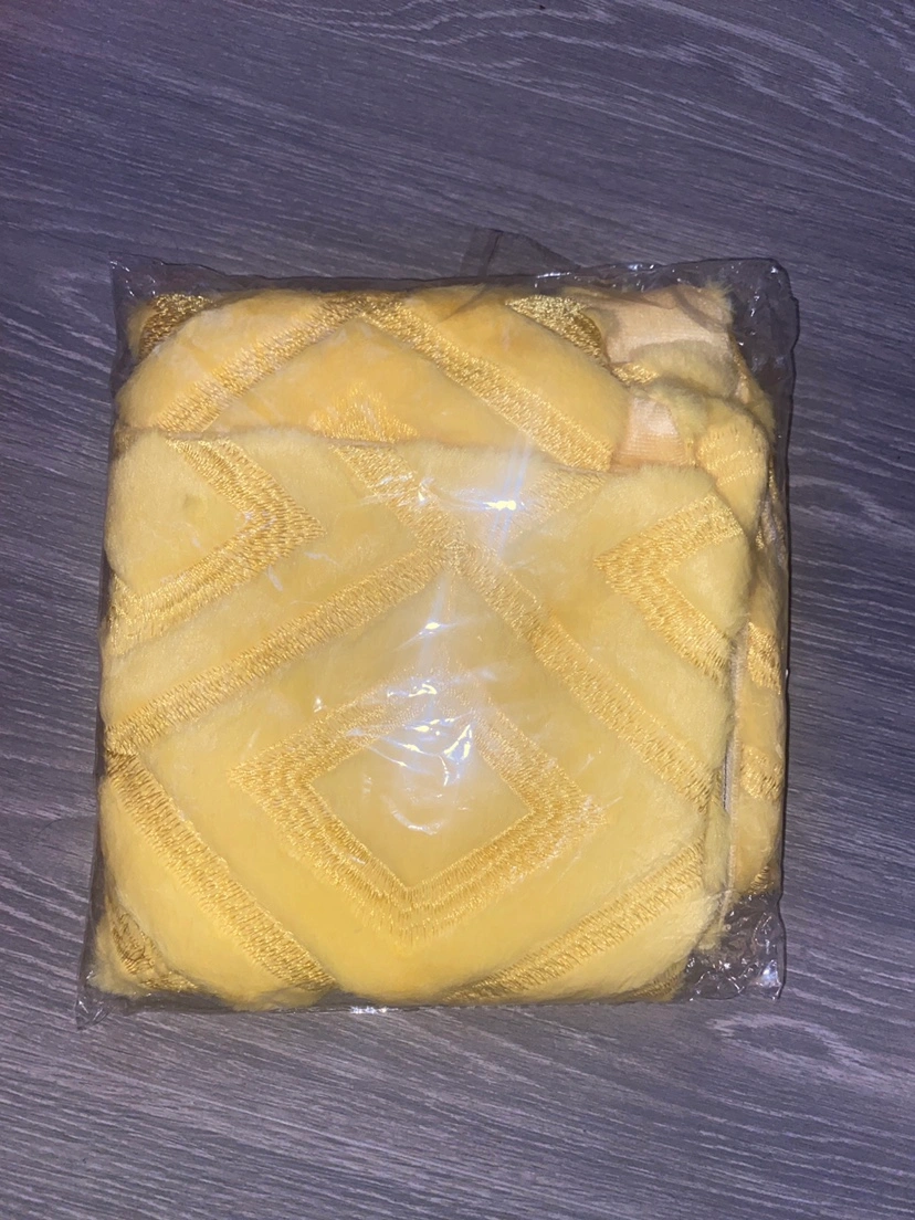 Selling a brand new, yellow decorative set of 2 pillow cases! It's still in its original packaging and has a lovely embroidered diamond pattern. Perfect for adding a pop of colour and texture to your living space