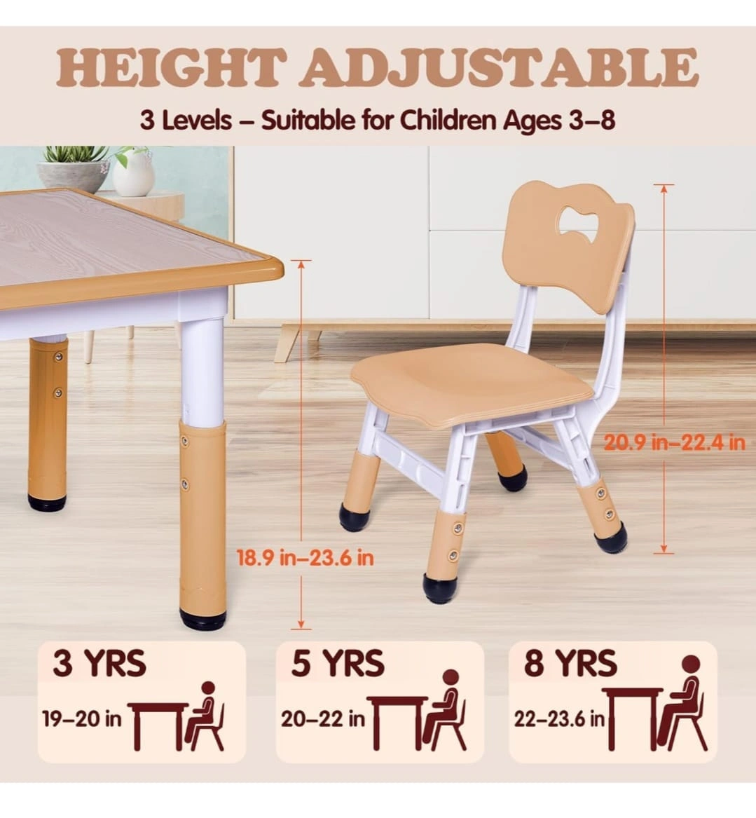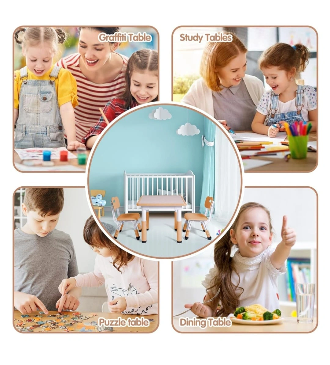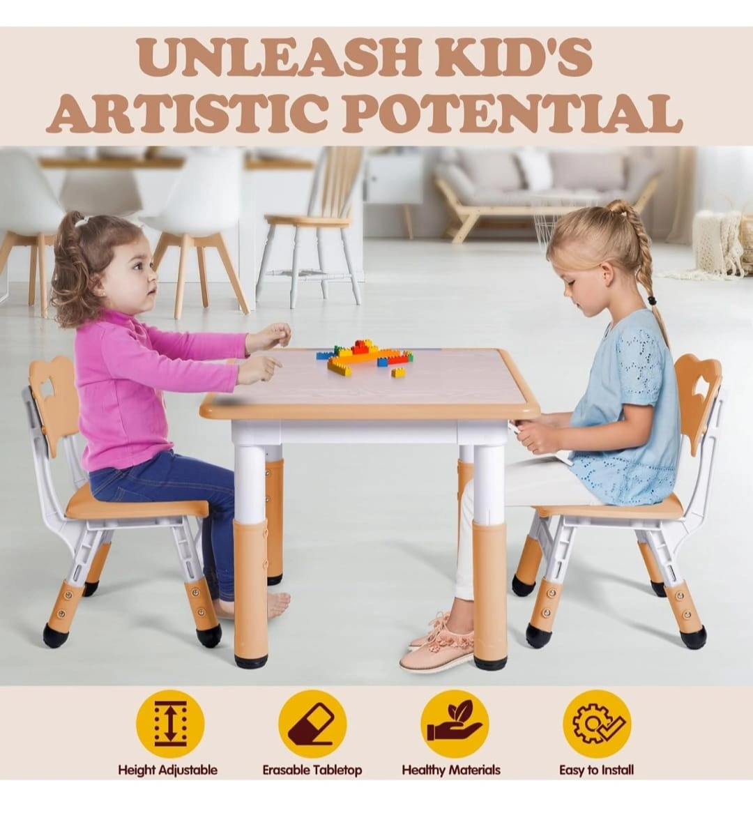Kids Table and 4 Chairs Set, Height Adjustable Toddler Study Table and Chair Set for Ages 3-8 Children, Kid Size - Graffiti Desktop, Easy to Wipe/Arts&Crafts - Homes/Classrooms/Daycare It's new