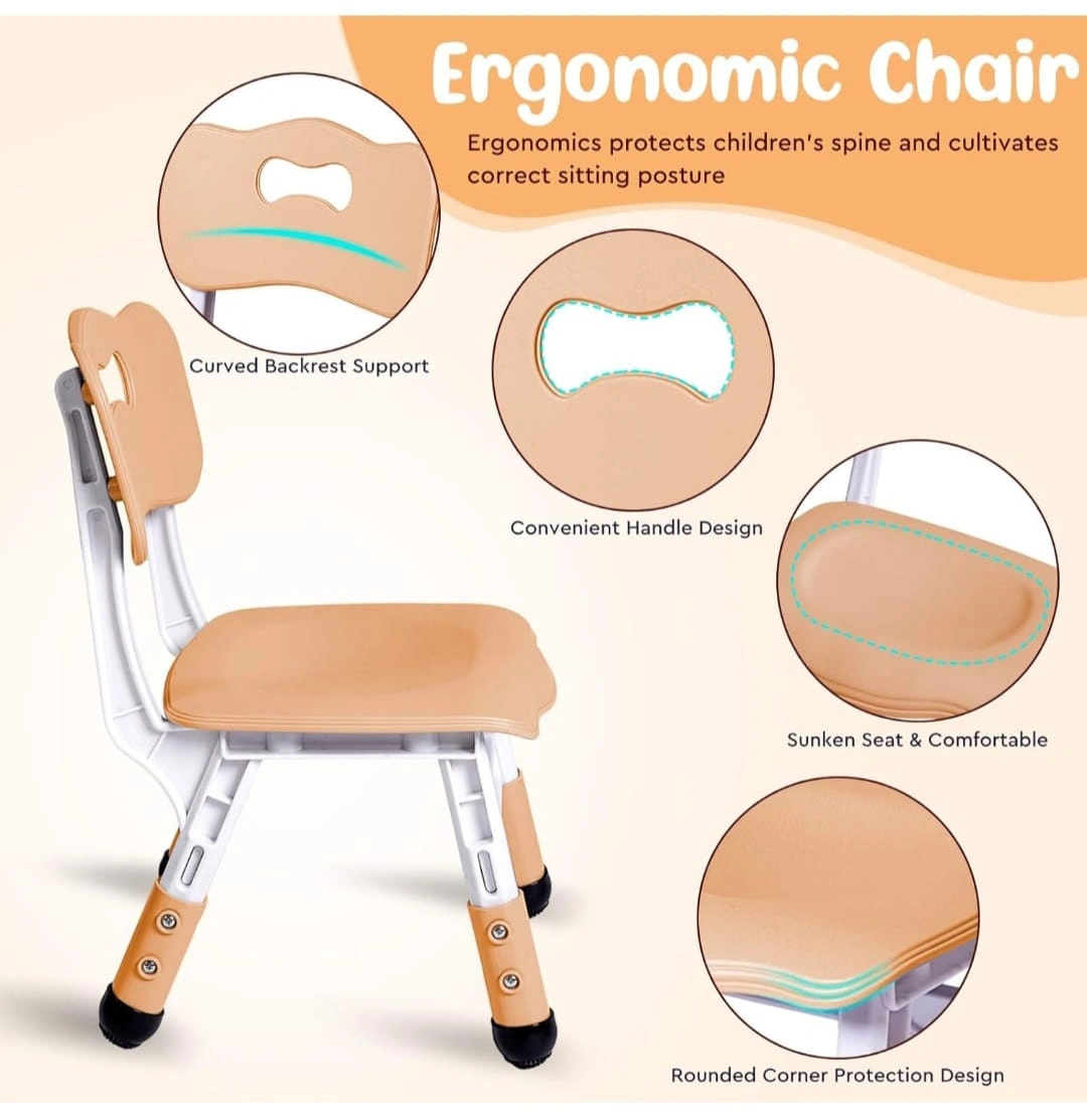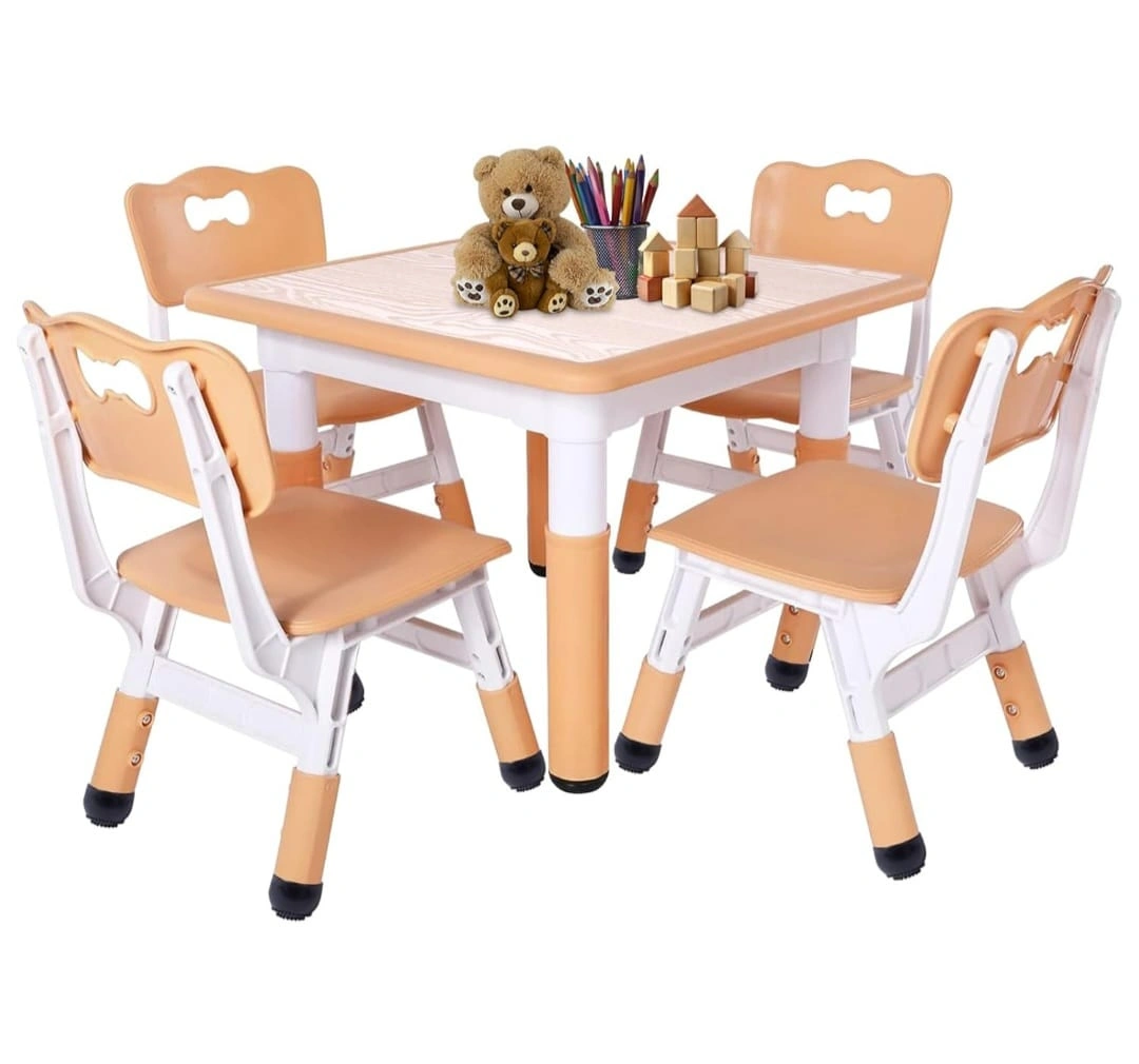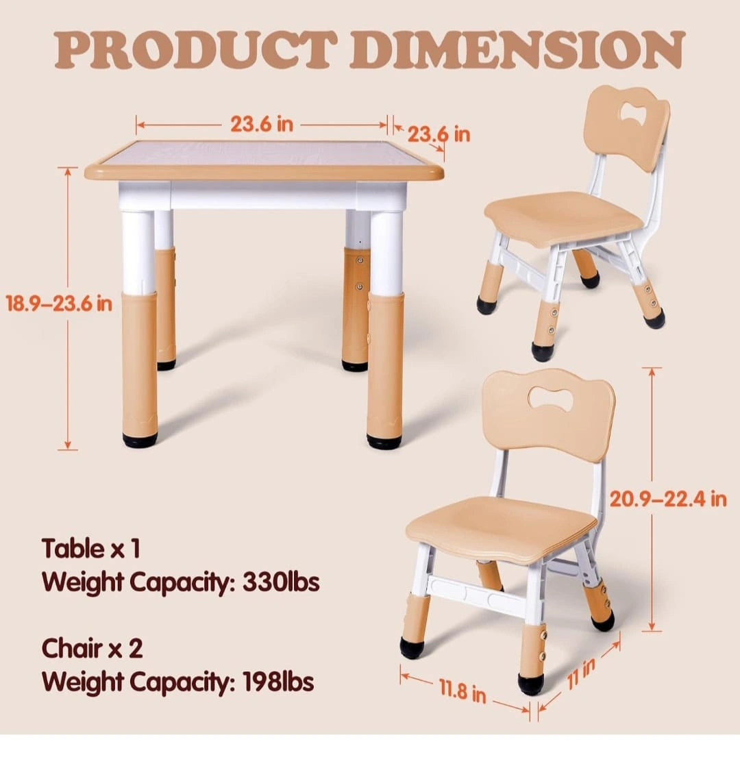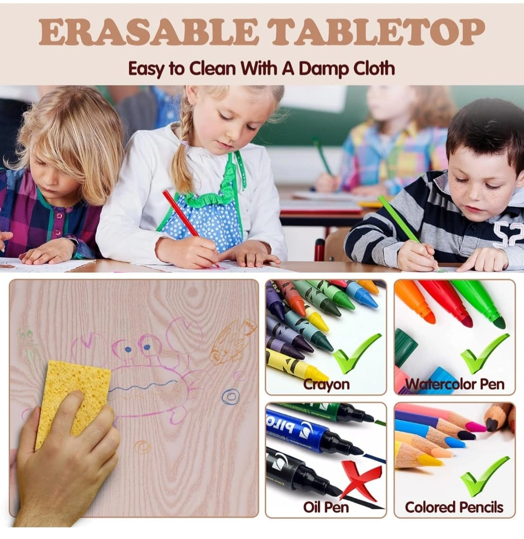 Kids Table and 4 Chairs Set, Height Adjustable Toddler Study Table and Chair Set for Ages 3-8 Children, Kid Size - Graffiti Desktop, Easy to Wipe/Arts&Crafts - Homes/Classrooms/Daycare It's new