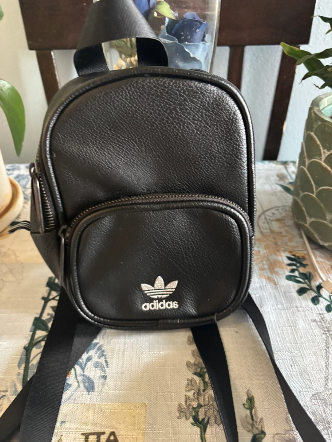 This is an Adidas mini backpack in black. It's perfect for carrying your essentials in style. The size is great for everyday use!