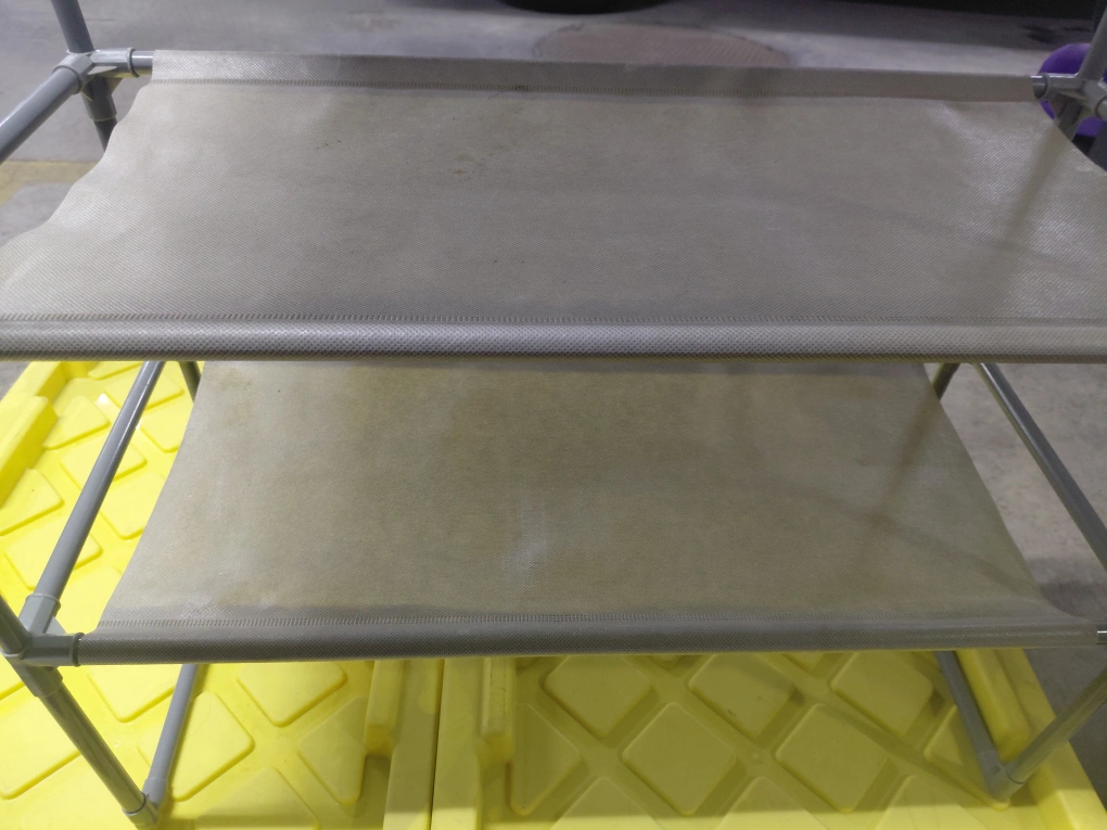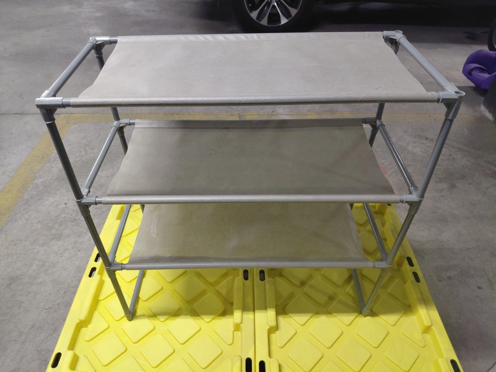 Three tiered shoe rack. Grey fabric and plastic frame. Assembly instructions are included to help you set it up easily. It's in great shape and ready for a new home. Pick up Kennedy and St. Clair Ave E