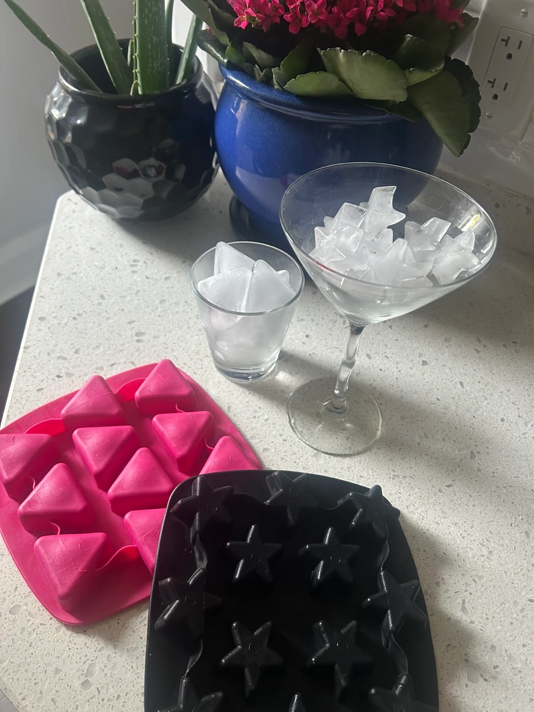 Fun star and triangle shaped ice cube molds. Kids love! Set of chilling stones also included - won’t melt in drinks and dilute. Can pick up downtown or High Park area.