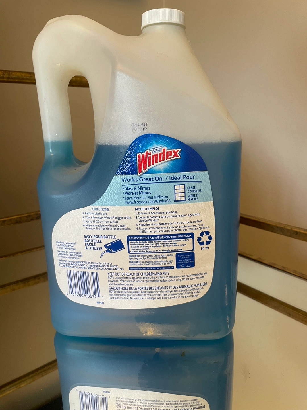 Selling a 4 Litre jug of Windex Original Glass Cleaner. It's Canada's #1 selling glass cleaner, perfect for streak-free shine on your glass and mirrors Located in Osborne Village with easy access to driveway. Selling 4 litres of Windex Brand Window Cleaner . Was originally 5 litres but I did use some . Priced at Walmart for about 3.60 per litre including tax . So if you need a lot of Windex this is a good buy . Accepting etransfer for guaranteed hold or cash transactions are FCFS Please see my other listings as I am downsizing . Thanks