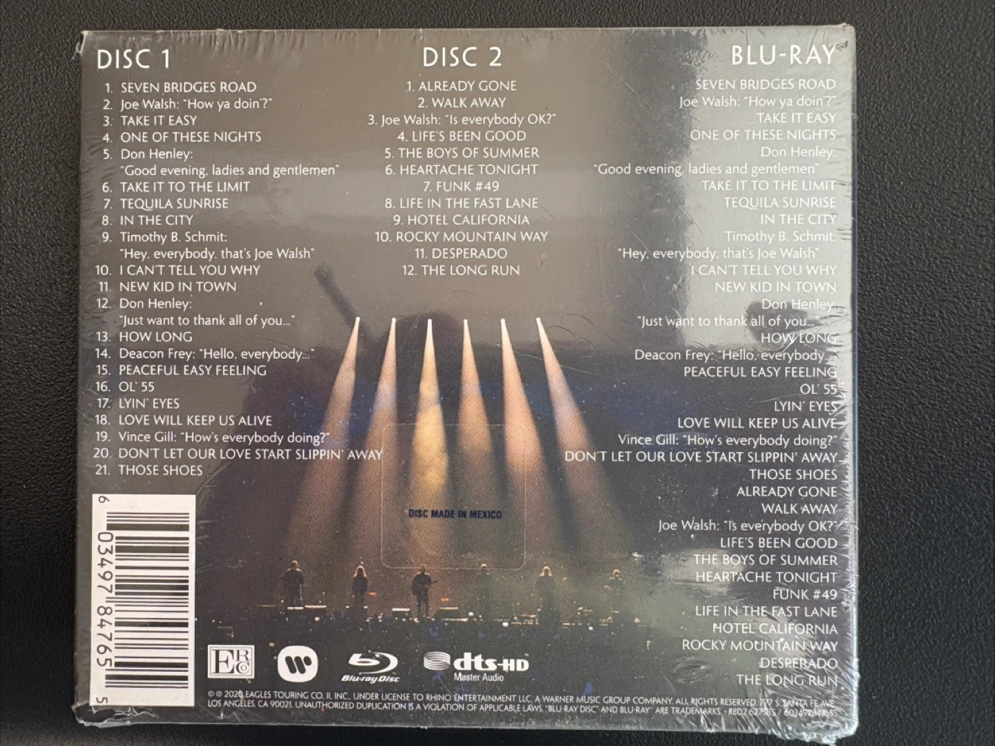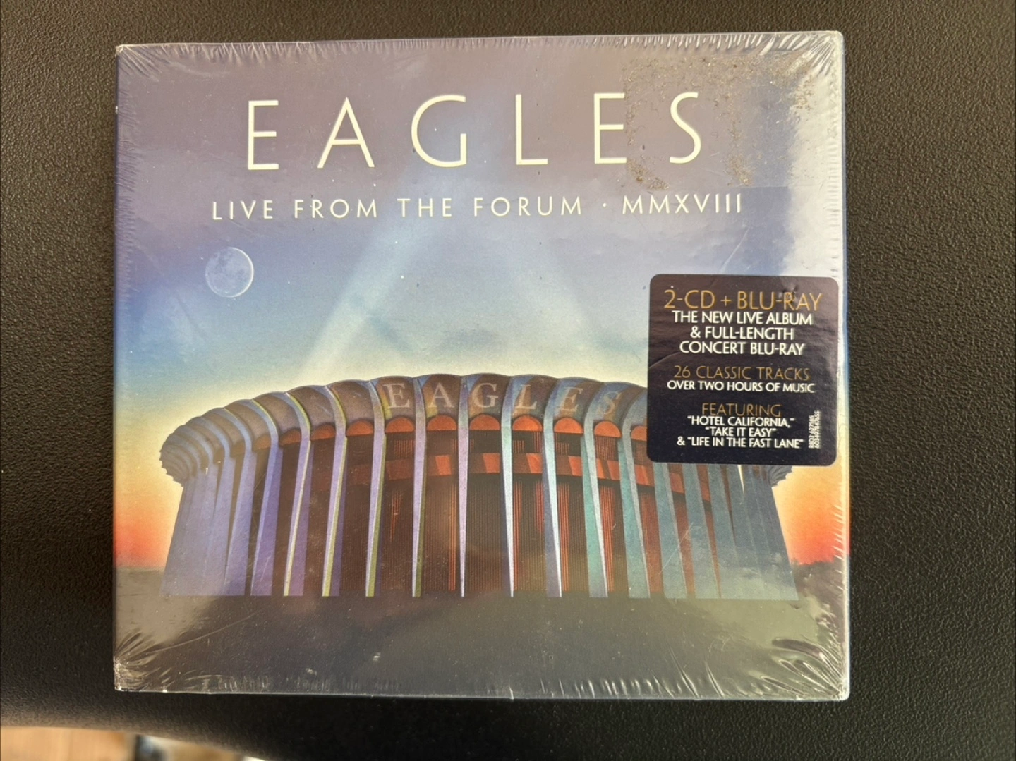 Selling a brand new, sealed copy of Eagles: Live From The Forum MMXVIII. This set includes 2 CDs and a Blu-ray disc, featuring 26 classic tracks and over two hours of music. Enjoy live performances of hits like "Hotel California", "Take It Easy", and "Life In The Fast Lane"! $10 Pickup Georgetown South