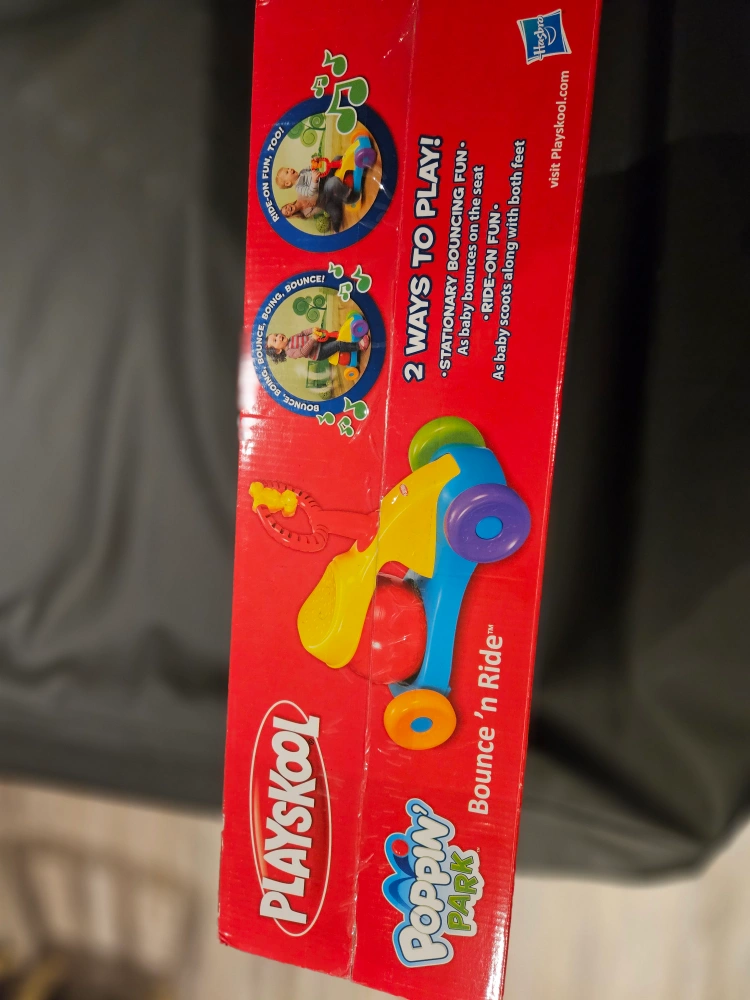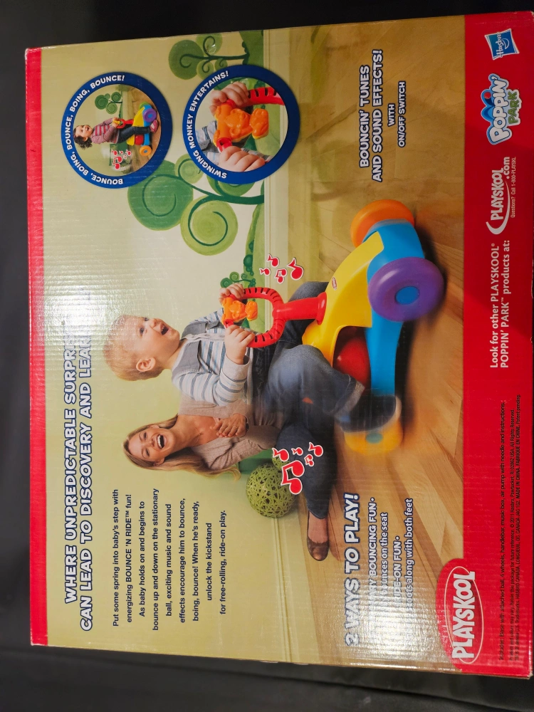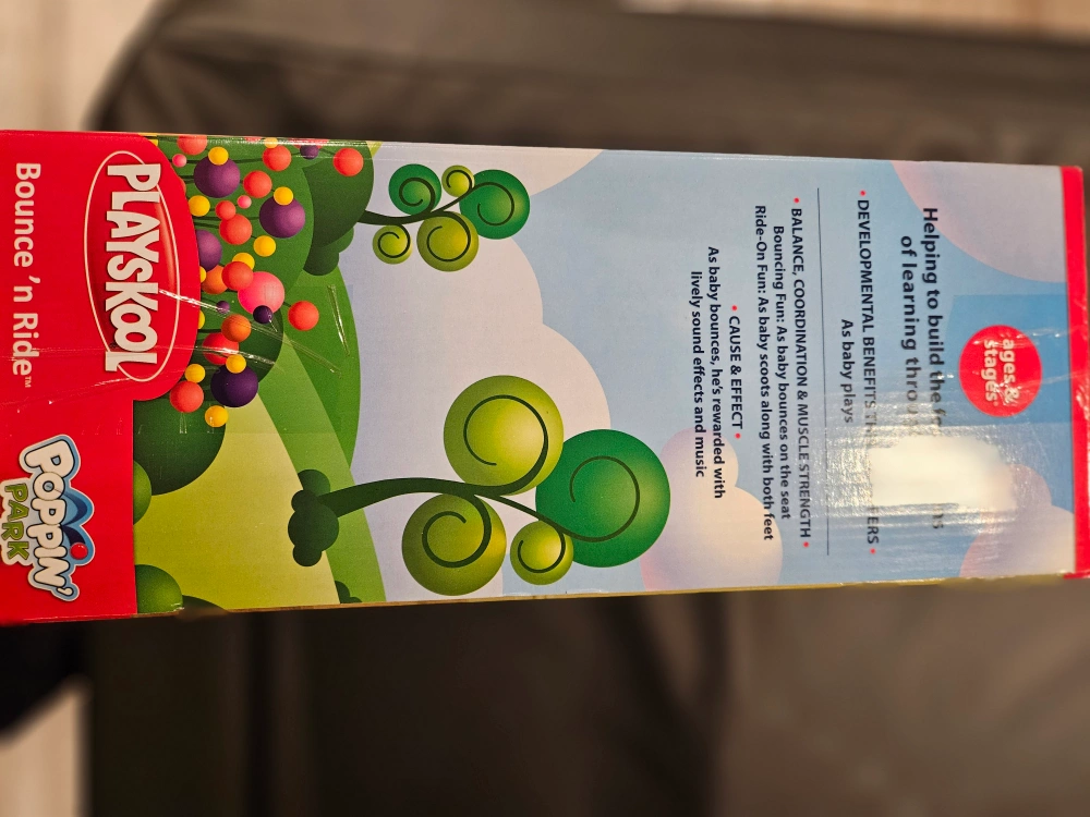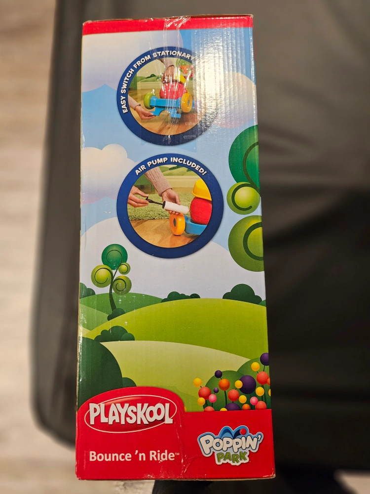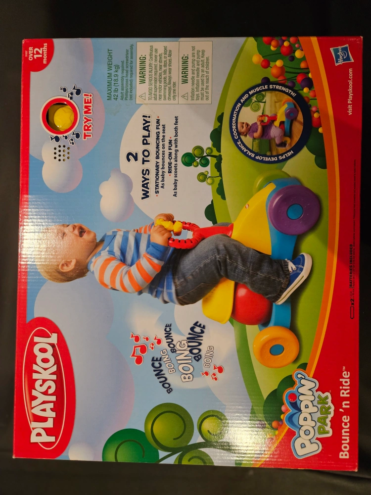 Selling a Playskool Poppin' Park Bounce 'n Ride! It's a fun toy that helps with balance, coordination, and muscle strength. It has two ways to play: stationary bouncing fun and ride-on fun. It's suitable for ages 12 months and up