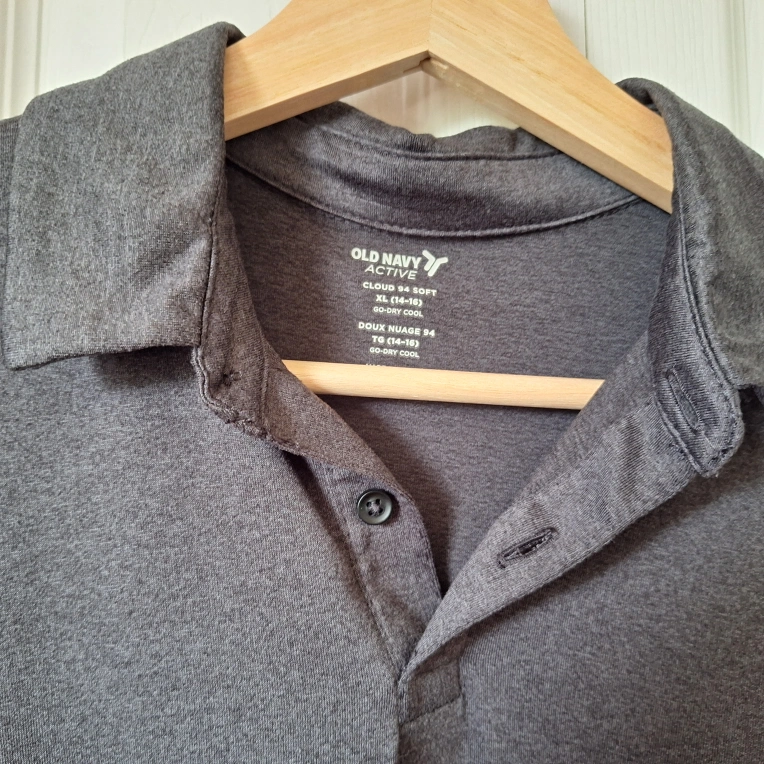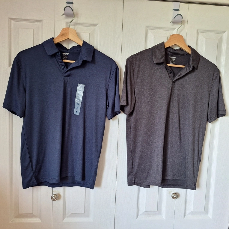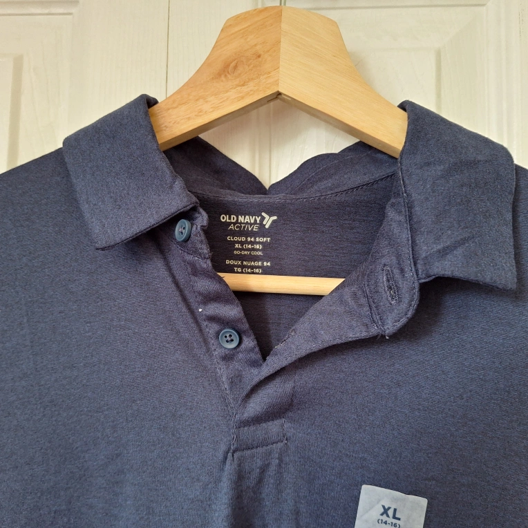 Selling two Old Navy Active polo shirts, size XL (14-16). One is a nice navy blue, and the other is a heather grey. Both are in great shape and made with a soft, go-dry cool fabric! 1 has never been worn and tags are still attached. The other one was only worn a few times.