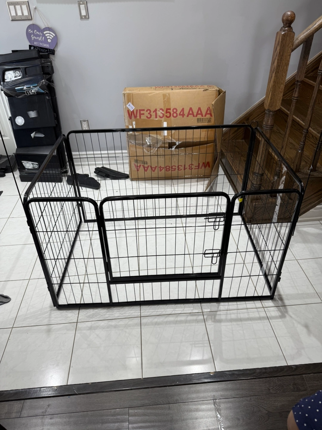 Selling a metal pet playpen. It's in great condition and ready for a new home. Perfect for keeping your furry friend safe and secure!