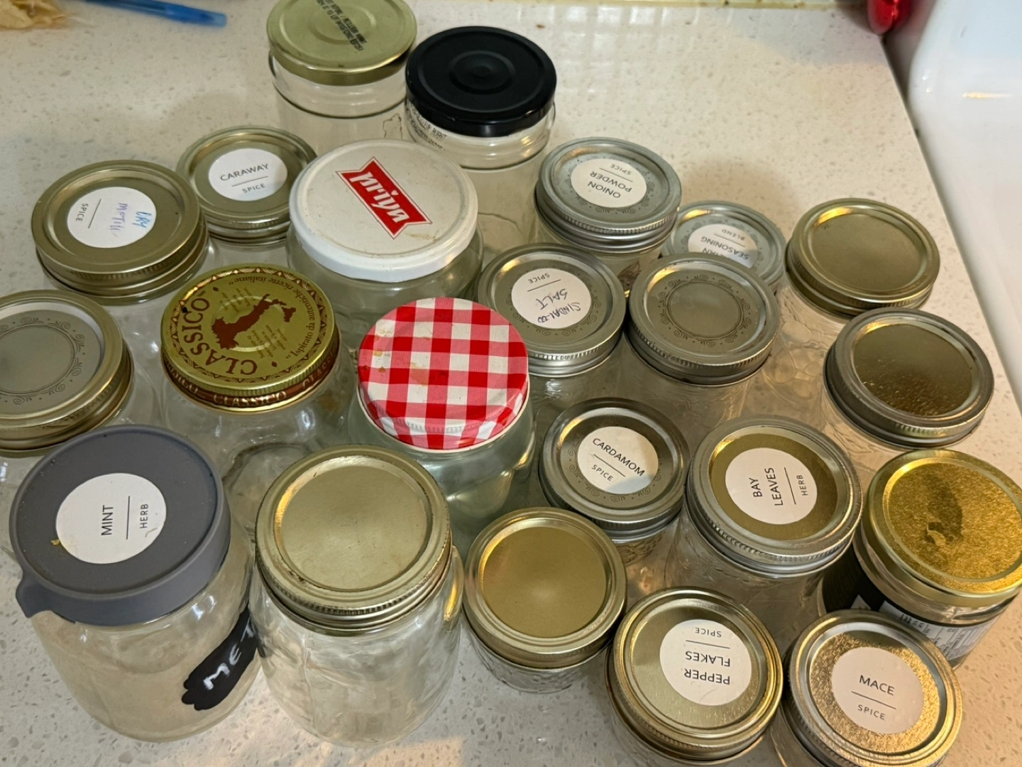 Selling a collection of Golden Harvest and other assorted mason jars! They're great for canning, storage, or crafts. Various sizes and lid styles are available. Perfect for organizing your spices and herbs!