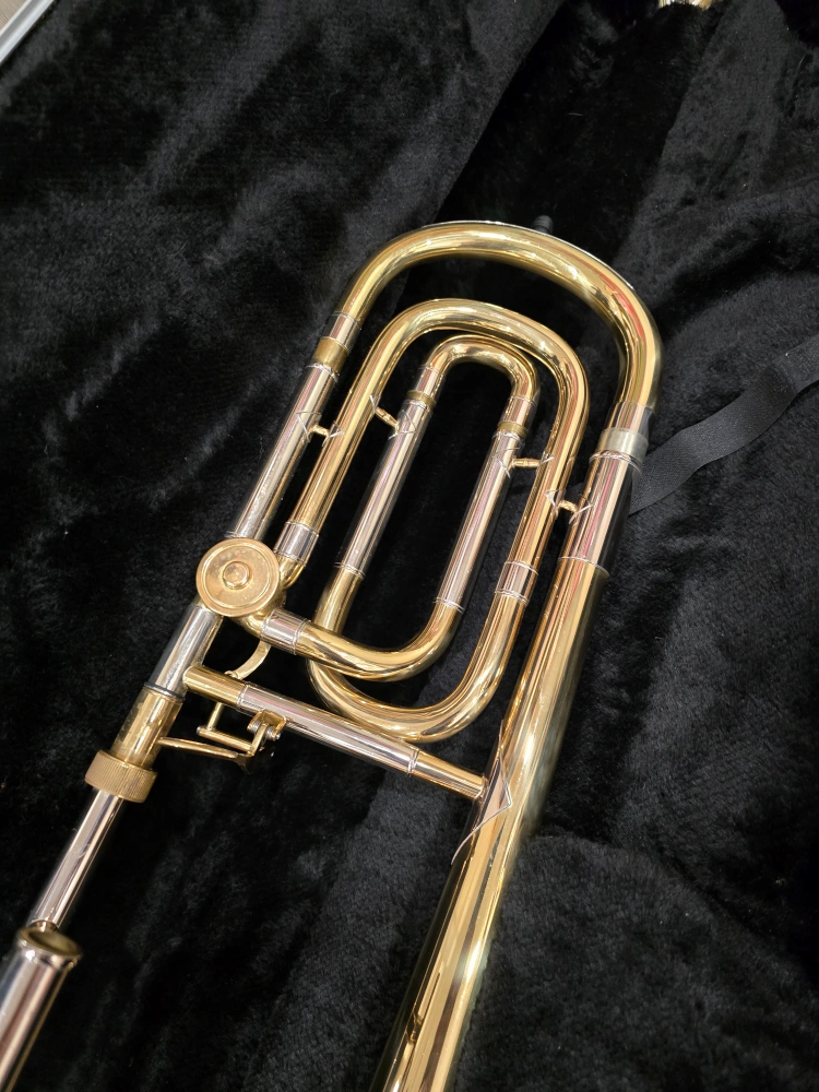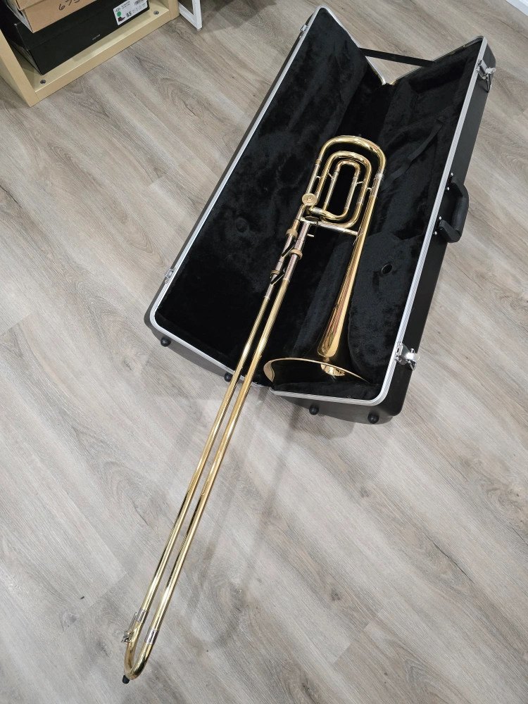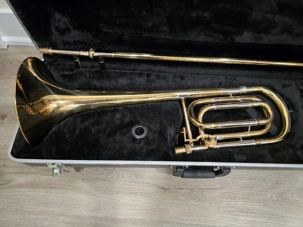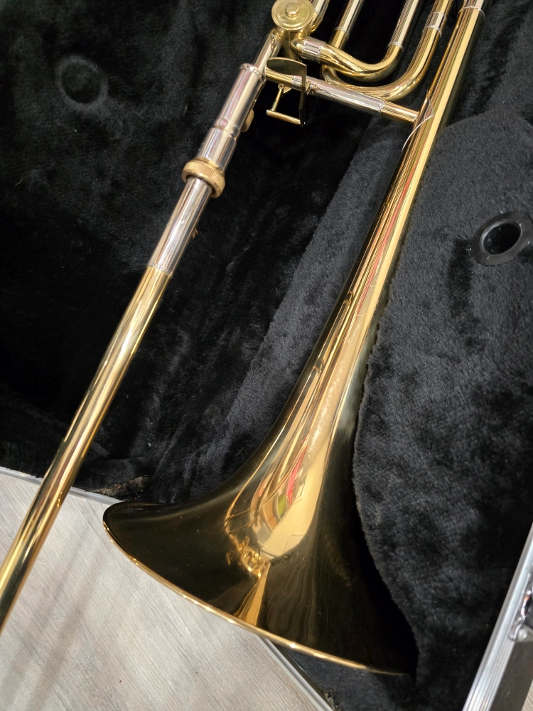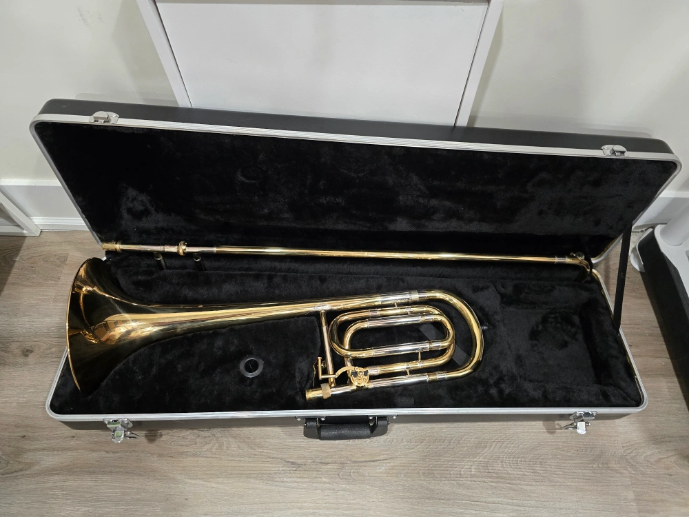 Great step-up instrument for students moving into intermediate level or joining a concert/jazz band. It plays well and sounds great. Valve and slide function smoothly. There's a small dent in the bell (see photo), but it doesn't affect playability. Includes the hard case Pick up in North York near Yonge/Finch Feel free to message questions or to arrange a time to try it out