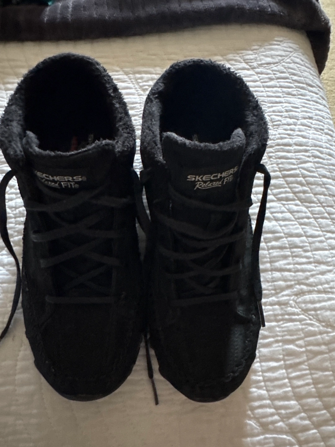 Selling a pair of Skechers Relaxed Fit shoes in black, size 7.5 They're in excellent condition and super comfy with the memory foam inside. Perfect for everyday wear!