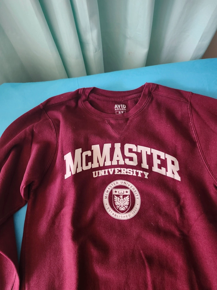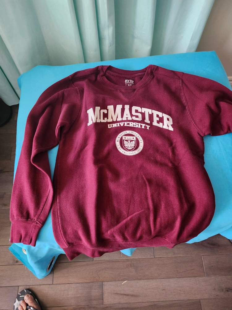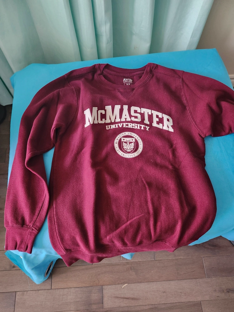 I'm selling an Avid Apparel sweatshirt featuring the McMaster University logo! It's a maroon colour and in size small. Perfect for any McMaster student or alumni!