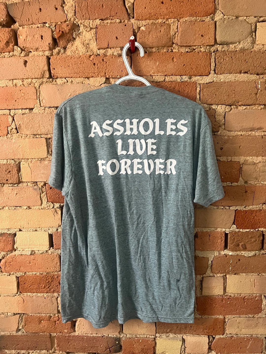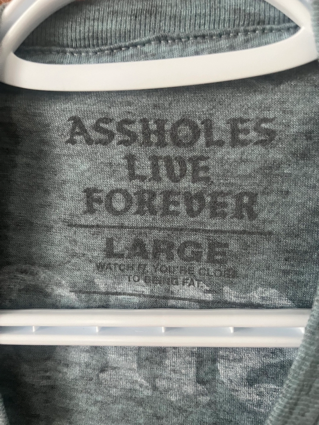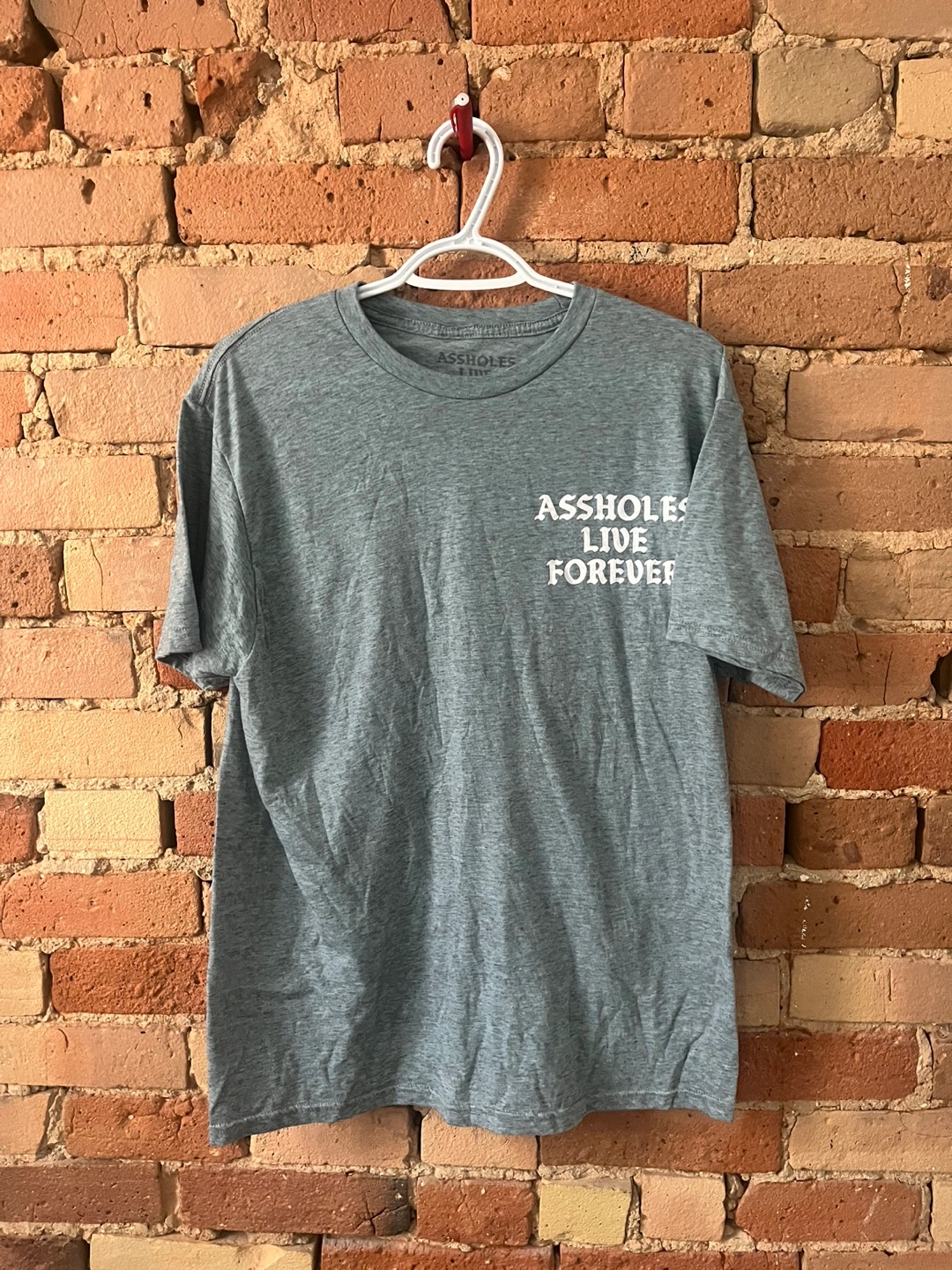 Selling a grey t-shirt "Assholes Live Forever" brand. It's a size large and in great condition, like new!