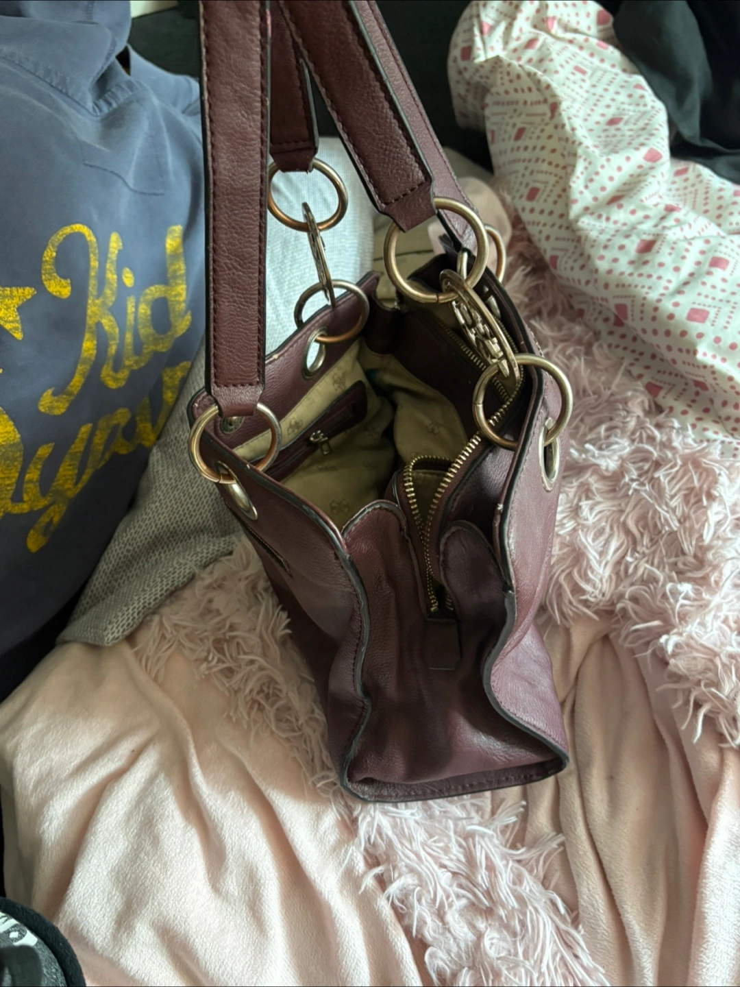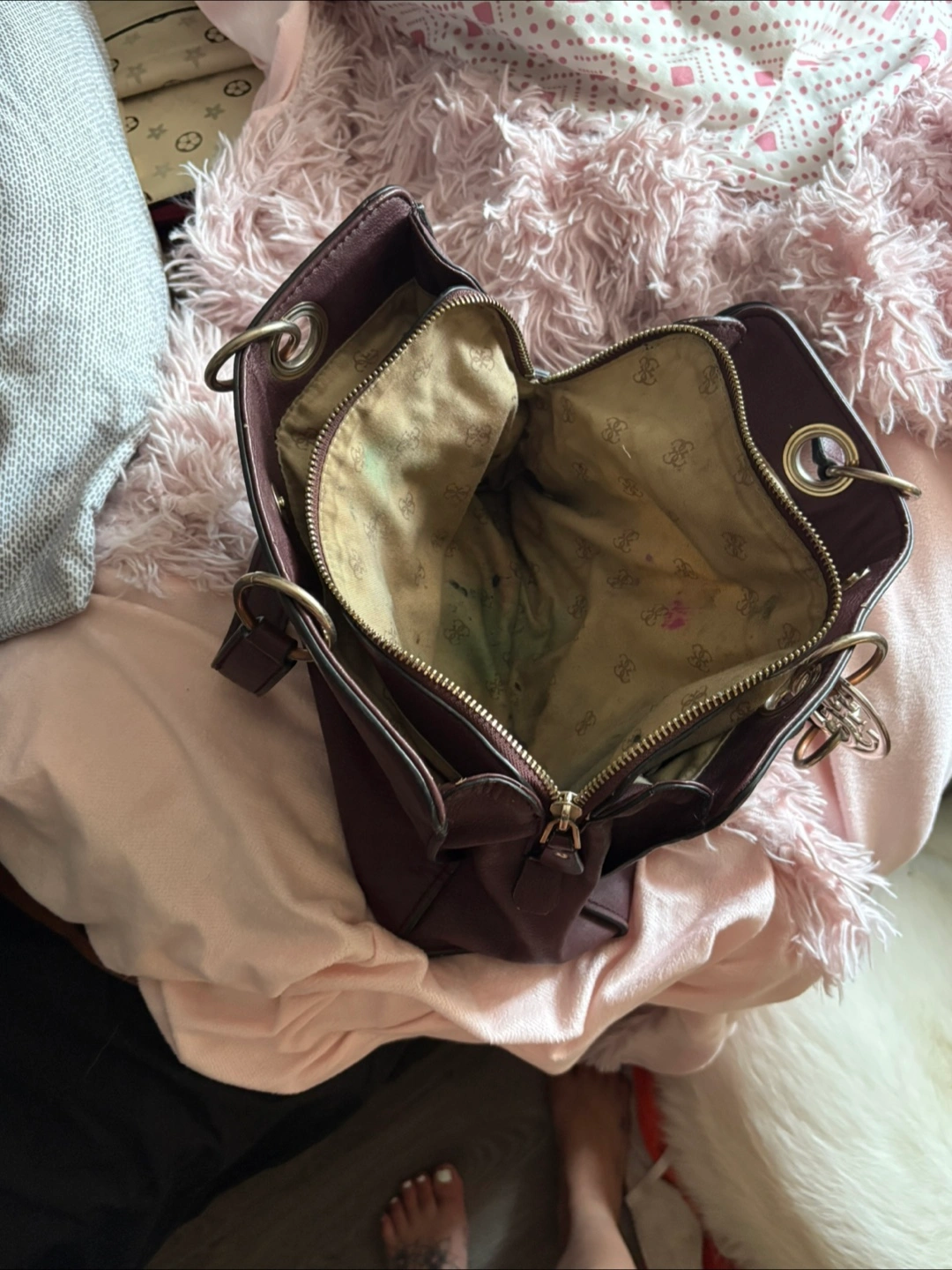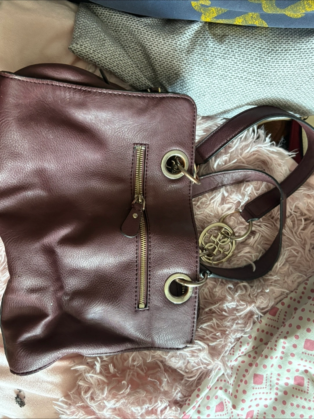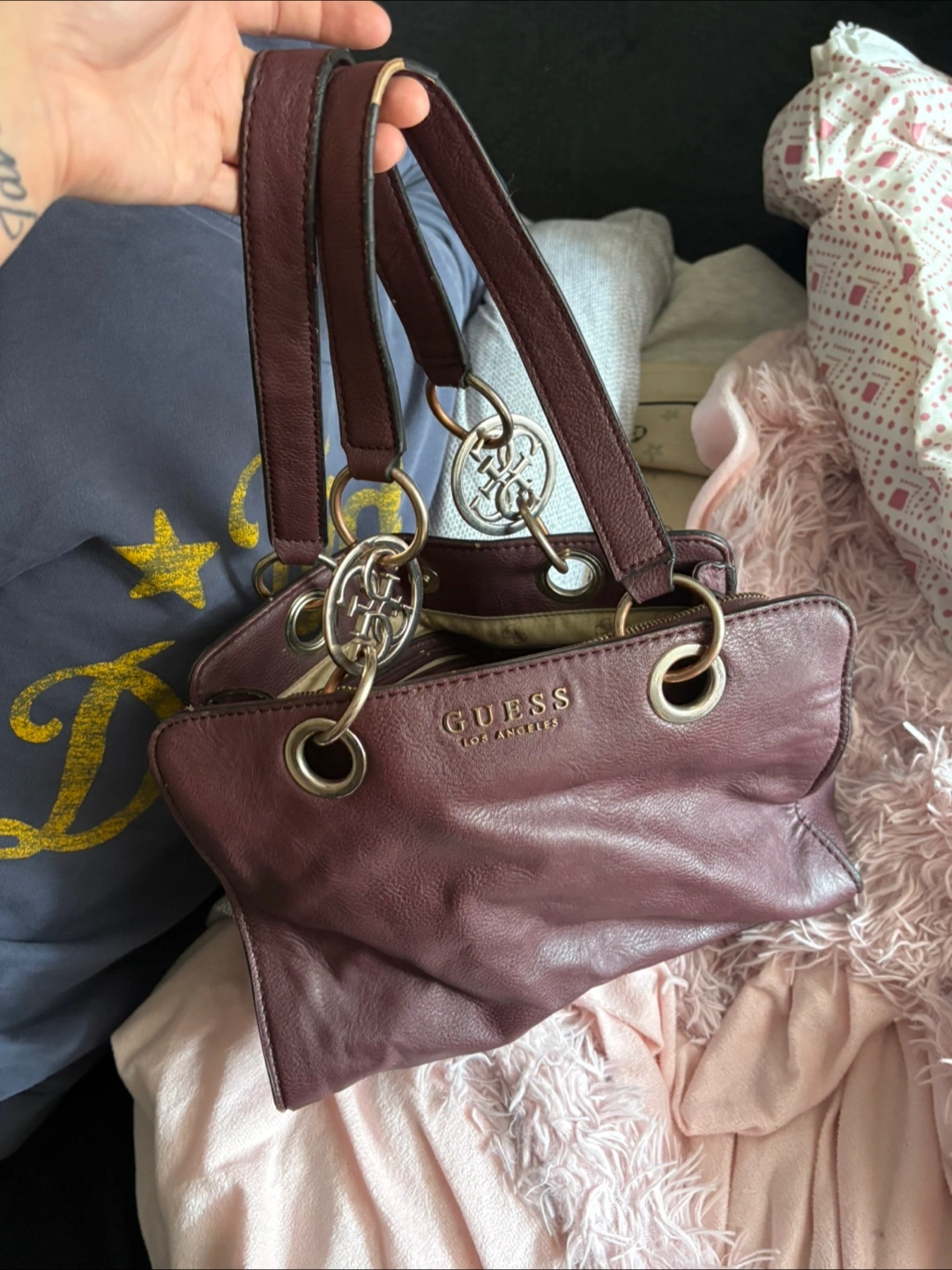 A lovely Guess purse in a rich purple colour! It's got some unique zipper and ring details, and the Guess logo adds a nice touch. It's a stylish everyday bag!