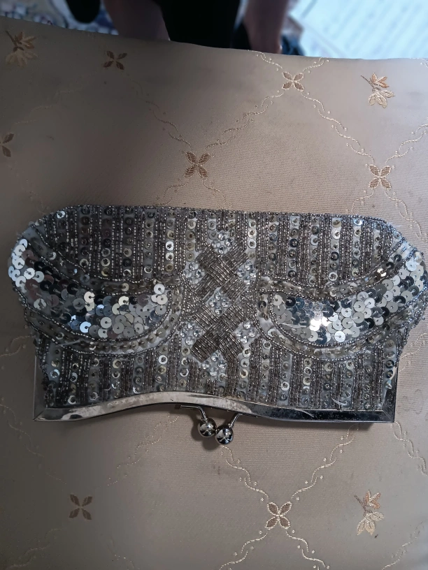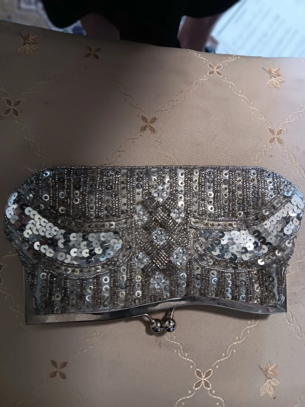 This is a lovely beaded clutch, perfect for an evening out or special occasion. It has a unique design and is in great condition. It's a stylish accessory to complete your look!
