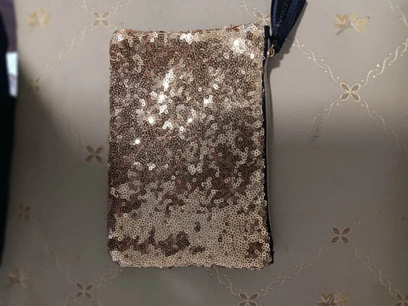 This is a cute sequin clutch bag: By Ipsy. Can be used as a makeup bag but also for a night out. The sequins add a touch of sparkle and glamour. It has a zipper closure and a tassel detail.