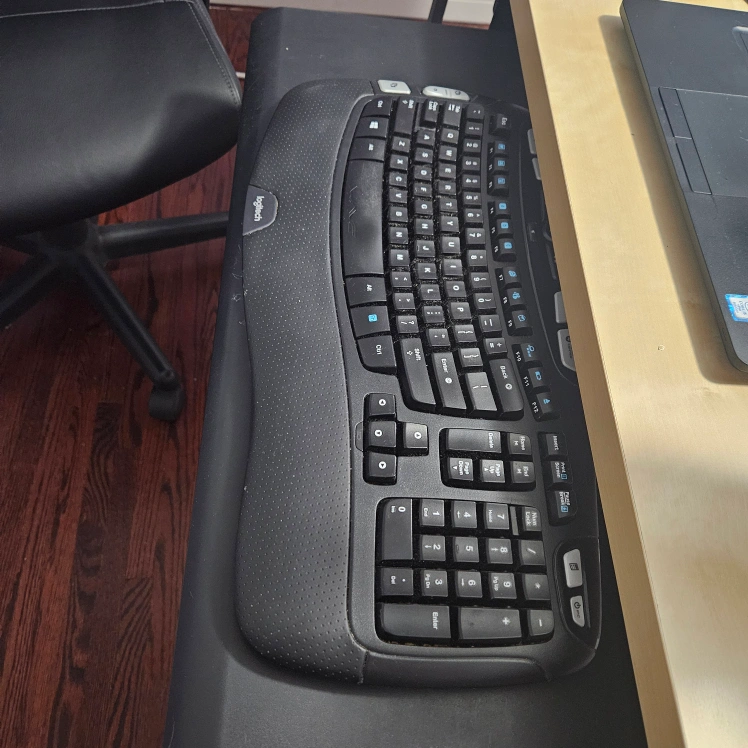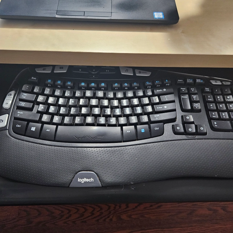 Selling a Logitech Wireless Wave keyboard in great condition! It features an ergonomic design to help with comfort and reduce strain while typing. Perfect for long work sessions or gaming. It's a great addition to any computer setup! $25 for both keyboard and the tray