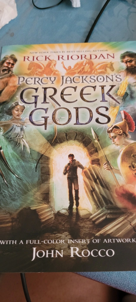 Selling a copy of Percy Jackson's Greek Gods by Rick Riordan! It includes a full-colour insert of artwork by John Rocco. A great read for fans of the series or anyone interested in Greek mythology