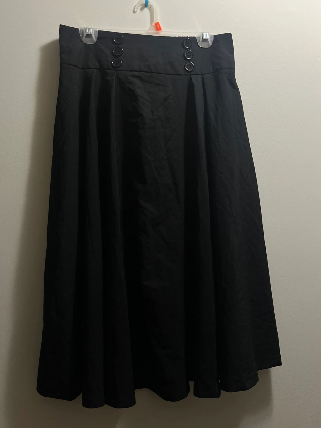 Brand new with tags Boutique piece Pickup Brampton or downtown Toronto This elegant black skirt features a stylish buttoned design, perfect for any occasion. Its classic look makes it a versatile addition to your wardrobe. Approximate measurements: Waist: 15.5”-16” Length 31.5” —BinB—