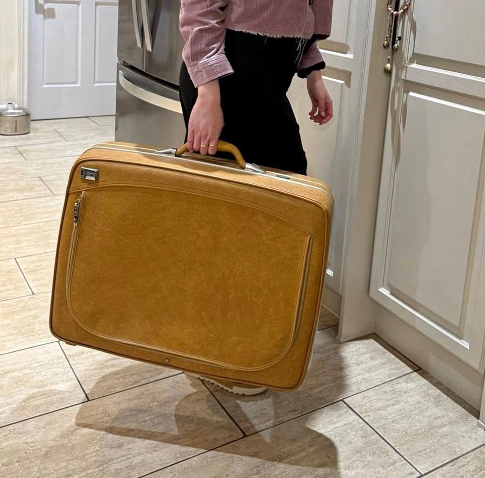 No key for the lock. Feel free to ask any questions. Not too heavy. Clean. Dimensions: Height a little over 18” Width 7” Length 23” Rare brand and amazing condition for its age, both inside and out. This brand is worth a decent amount if you can still find it today, luggage pieces in good or bad condition are few and far between. This is DIONITE, not Samsonite. Pick up in Niagara Falls Ontario