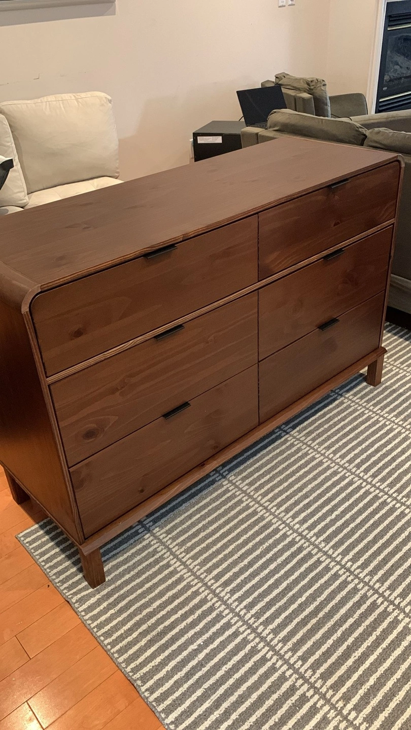Selling a West Elm Modern 6-Drawer Dresser in a lovely wood finish! It's a great piece for adding storage and style to any bedroom. Solid wood Dimensions: - Width: 52 inches - Depth: 19 inches - Height: 34 inches