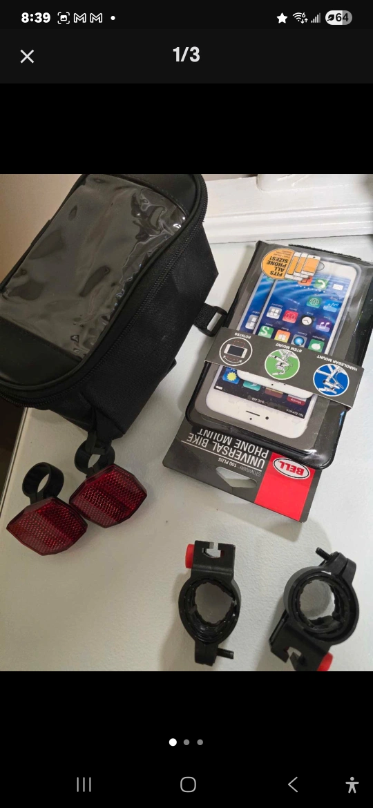 Selling a Bell universal bike phone mount. It fits all phone sizes! Also included is a bike bag and two reflectors. pick up only Cash only see my other posts
