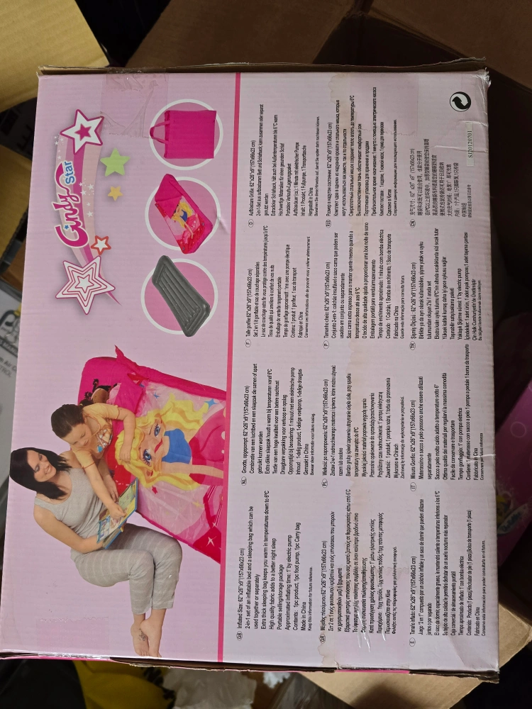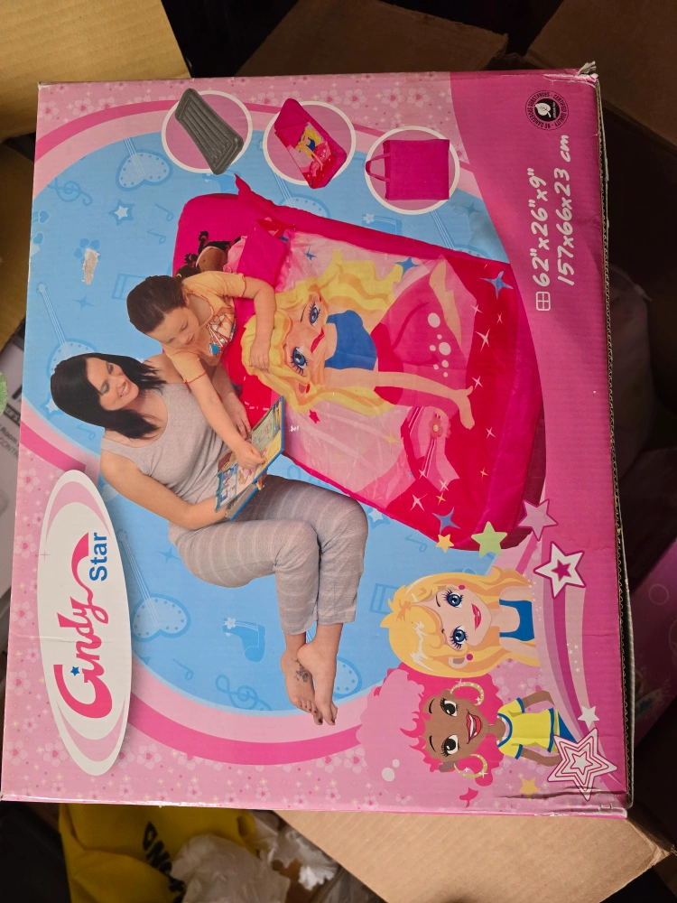 This Cindy Star inflatable bed is perfect for kids! - Inflated Size: 62"x26"x9" (157x66x23 cm) - Can be used as a bed or sleeping bag - Easy to inflate and deflate - Comes with a carry bag for portable storage pick up only Cash only see my other posts