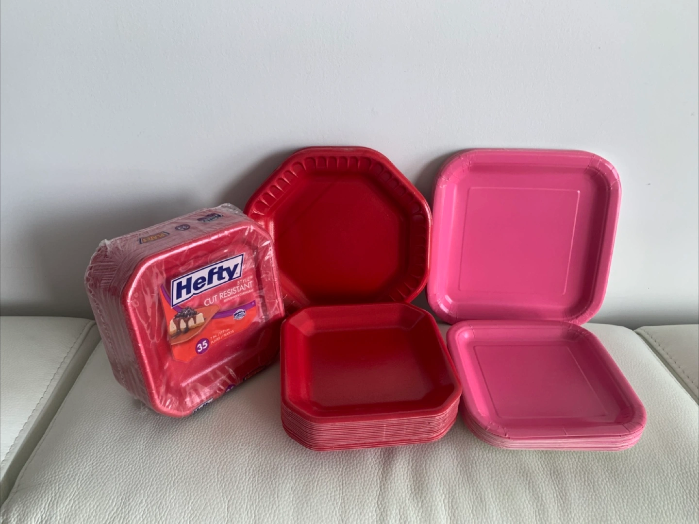 Selling a set of mix Cut Resistant paper plates! Pink and Red. There are a total of 103 plates. Great for parties or everyday use! The set includes: •52 square 7” red small plates. •22 square 7” pink small plates. •11 round red large plates. •18 square pink large plates. 💍Also selling a set of “Bride to be” small round plates for $10, see last pic. Pick-up n cash only. No holds, first come first serve. Prefer same day pick-up. Map on listing. Thx! 💛Look at my listings for great bundle discounts.