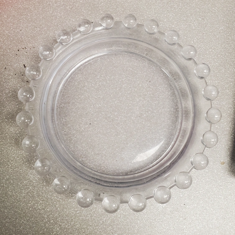 4 inch glass drip tray. 6 inches in width total.