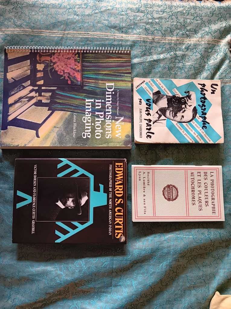 Selling a collection of photography books. Titles include: - New Dimensions in Photo Imaging by Laura Blacklow - Vous Parle by Jean-Philippe Charbonnier - Edward S. Curtis: Photographer of the North American Indian by Victor Boesen and Florence Curtis Graybill - La Photographie Des Couleurs Et Les Plaques Autochromes