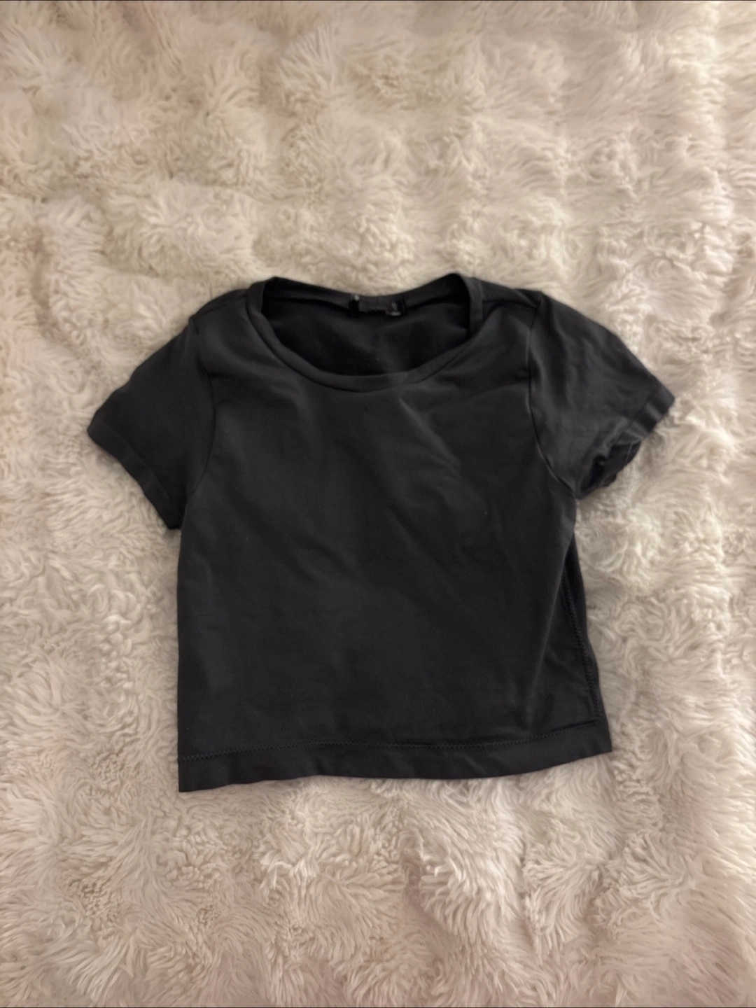A simple grey t-shirt, perfect for everyday wear! It appears to be in good condition and ready for a new home