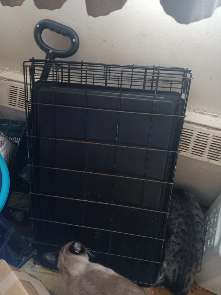Selling a used pet metal crate it's in good condition folds no damages Black metal asking $ 15 647-203-0411