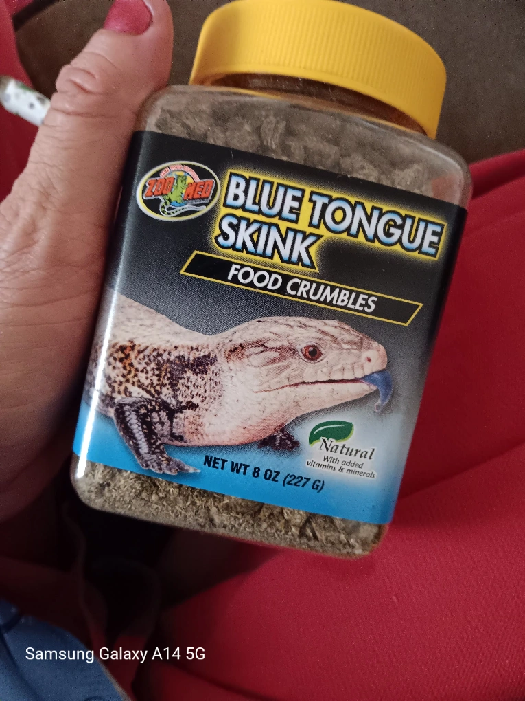 Selling a container of Zoo Med Blue Tongue Skink Food Crumbles! It's a natural food with added vitamins and minerals. Net weight is 8 oz (227 g) 647-203-0411
