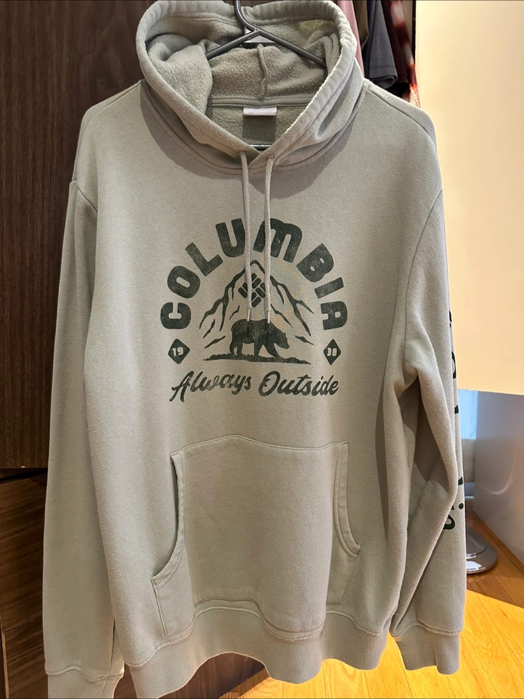 Cozy Columbia hoodie featuring the 'Always Outside' design! It's in great shape and ready for a new home. Perfect for those cooler Canadian evenings or layering up for outdoor adventures