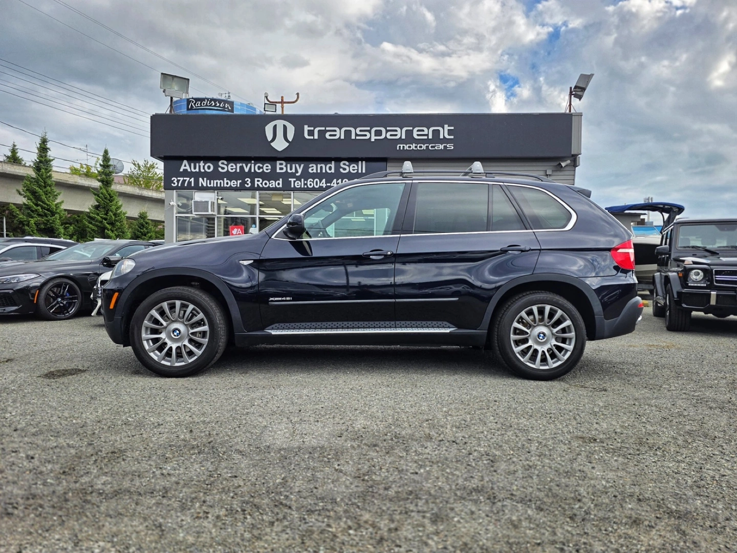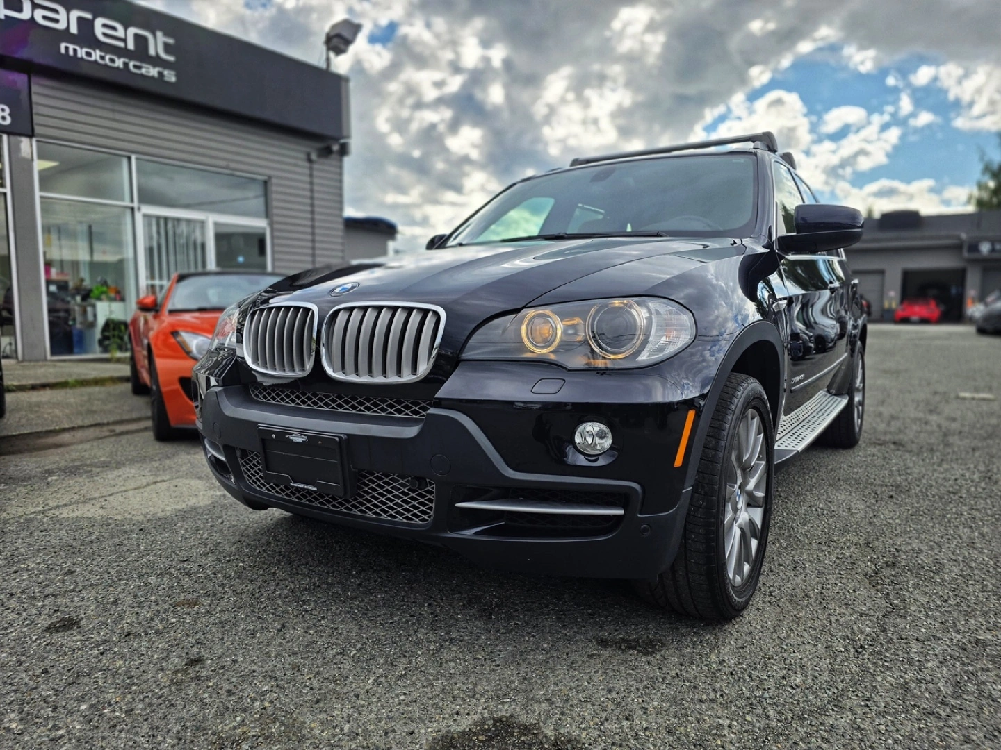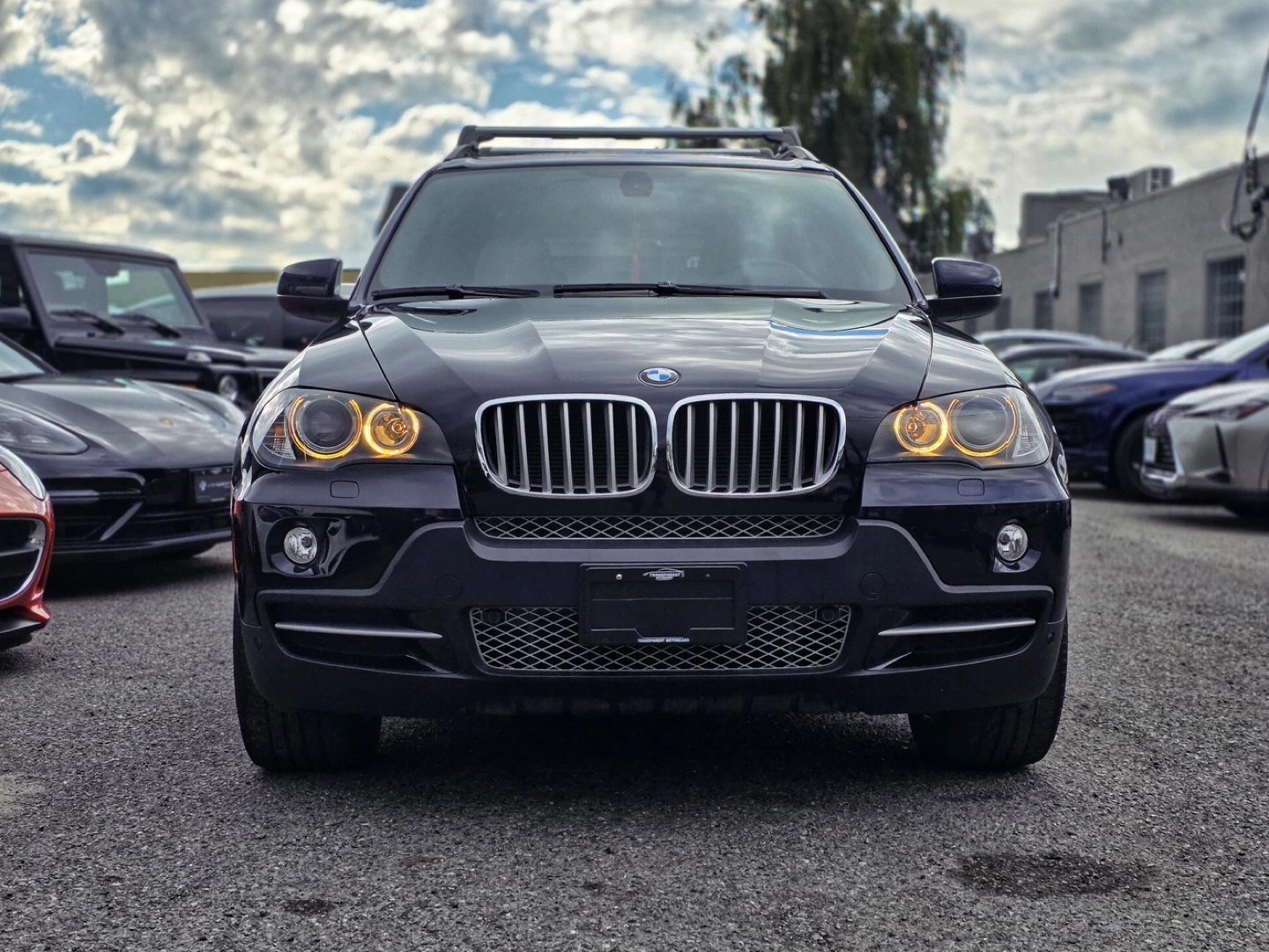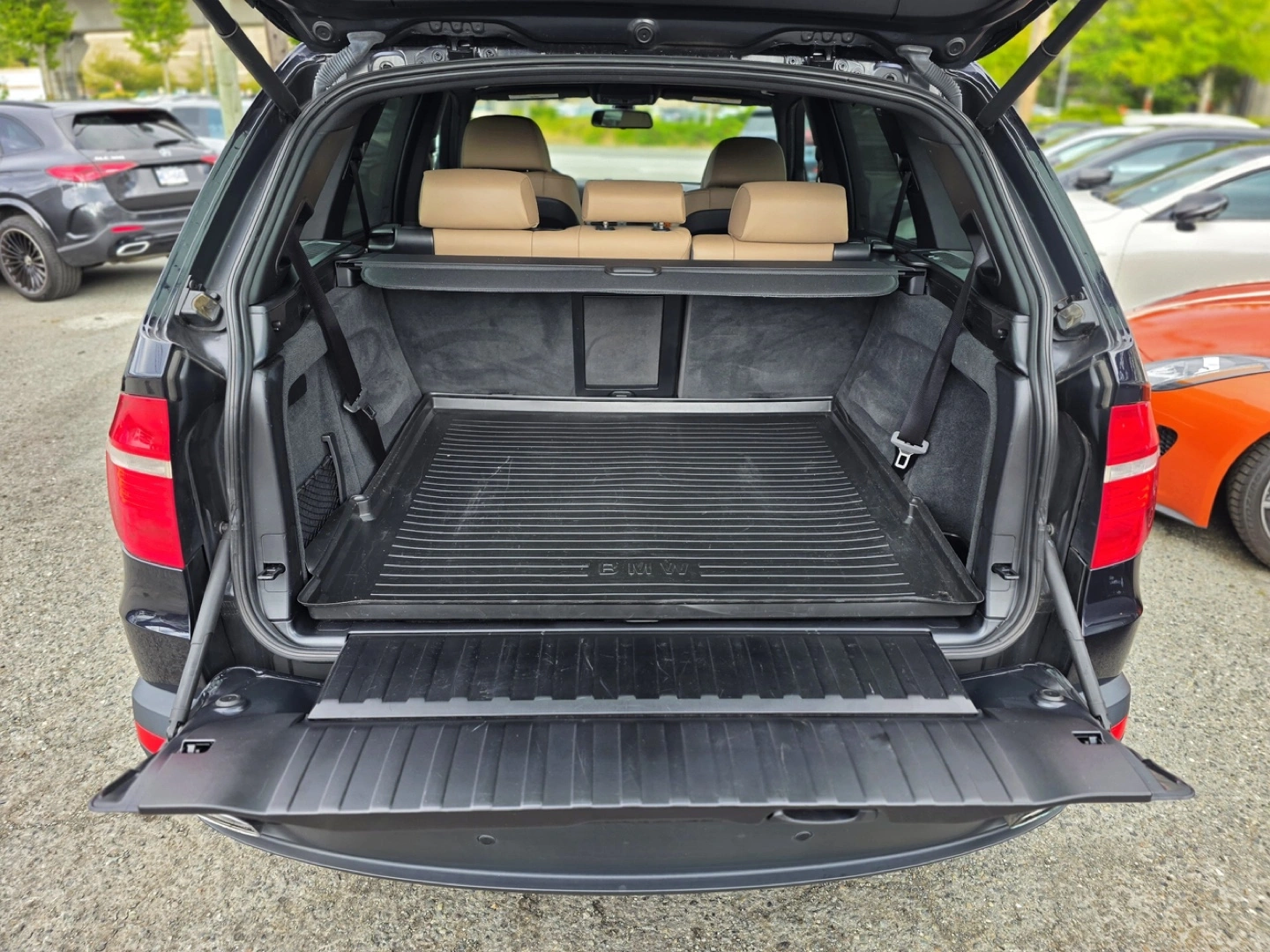 Selling a 2009 BMW X5 xdrive 48i SUV. It is black in color. Has a roof rack. The interior is tan.