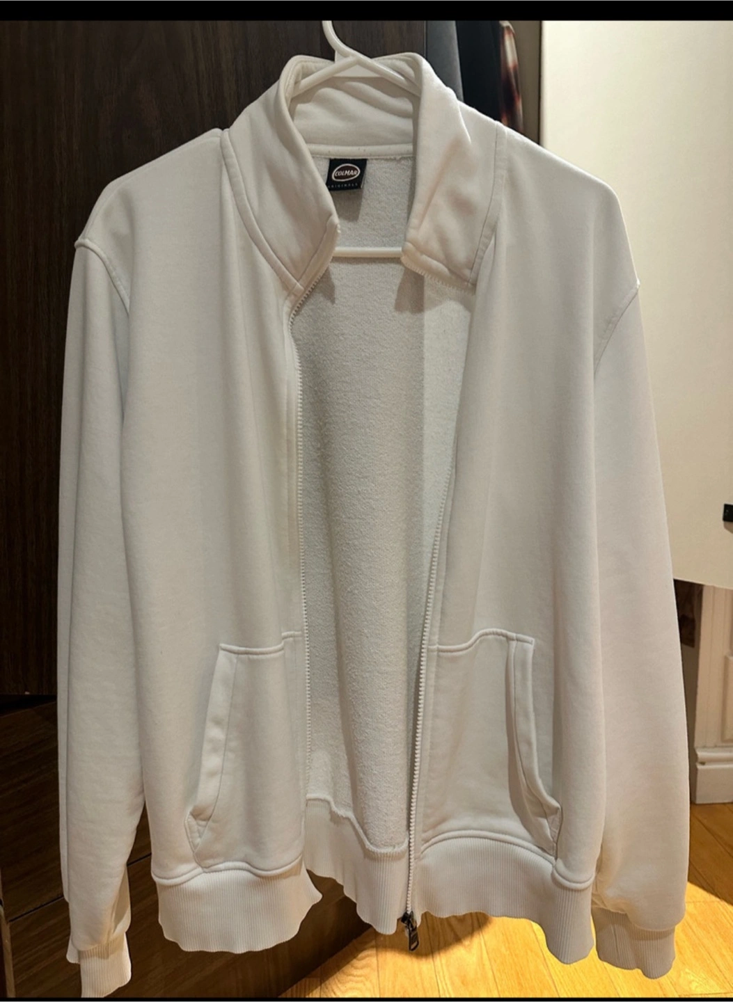 A Colmar Originals zip-up jacket in a clean white colour. It features a full zip closure and front pockets. Great for layering or wearing on its own!