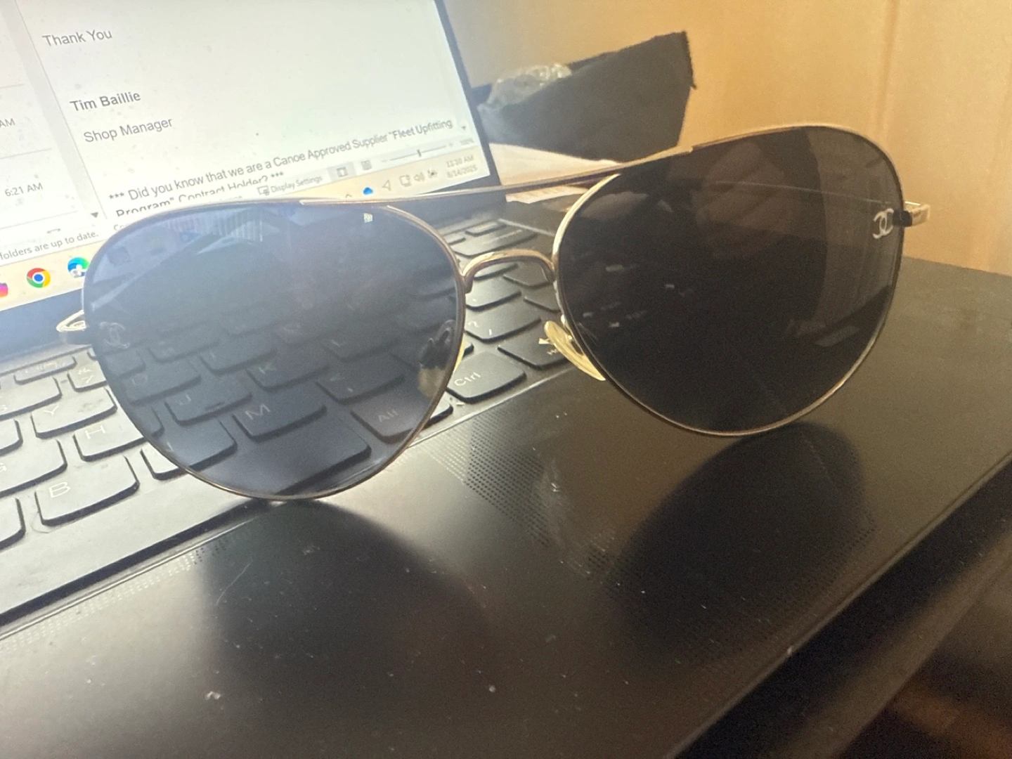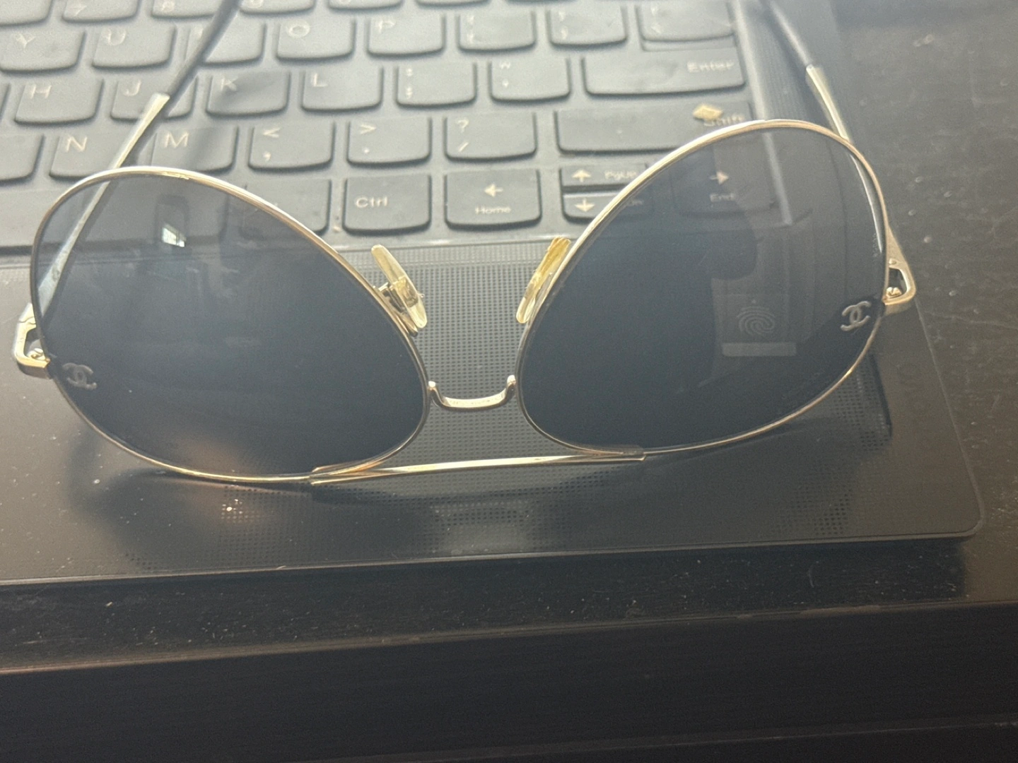 Selling a pair of Chanel aviator sunglasses. They are in good condition and come with a case 100 percent authentic