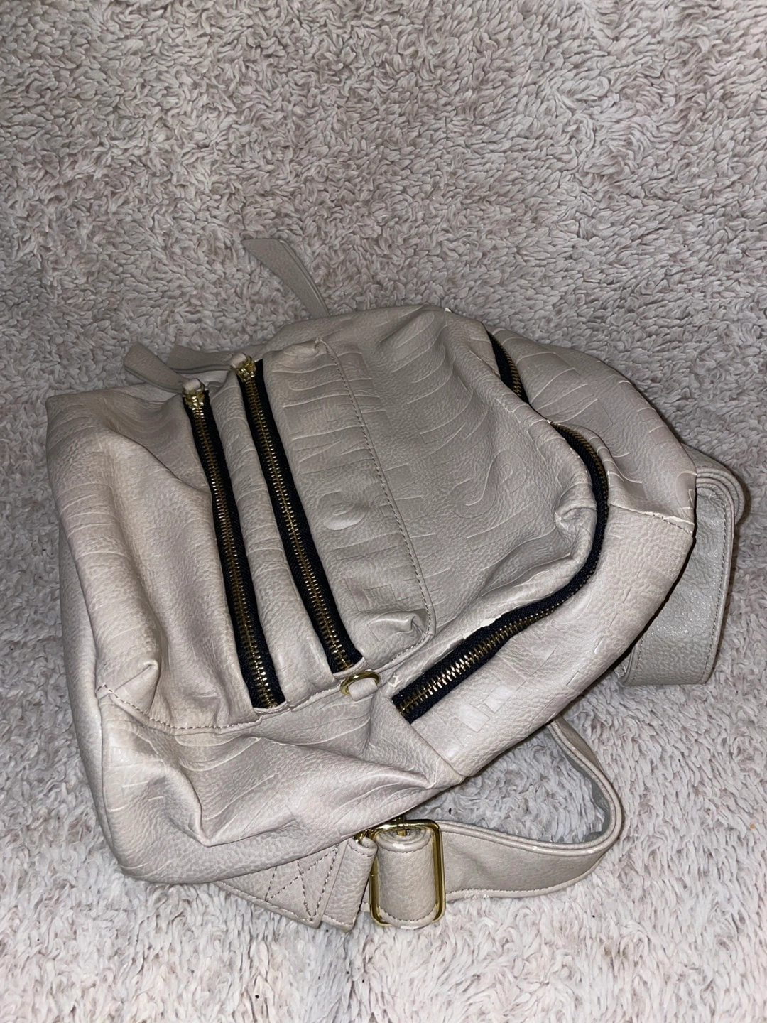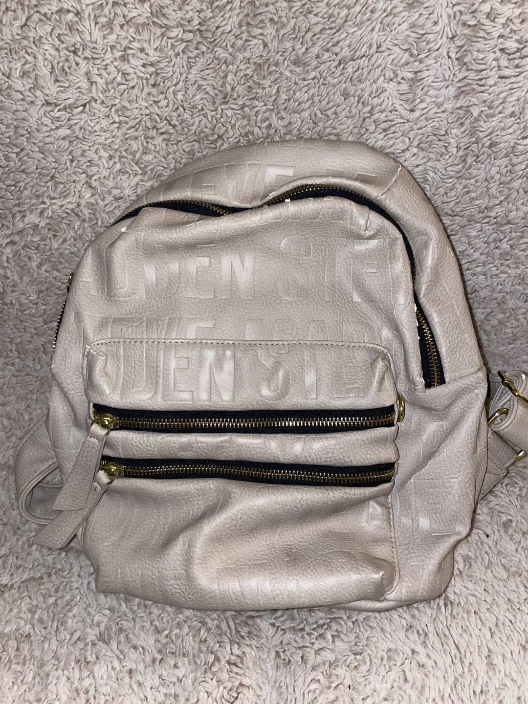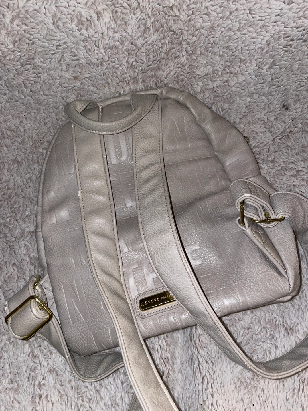 • Used Steve Madden backpack • 12”x5”x13” • Soft faux leather, includes straps and multiple pouches with zipper closure