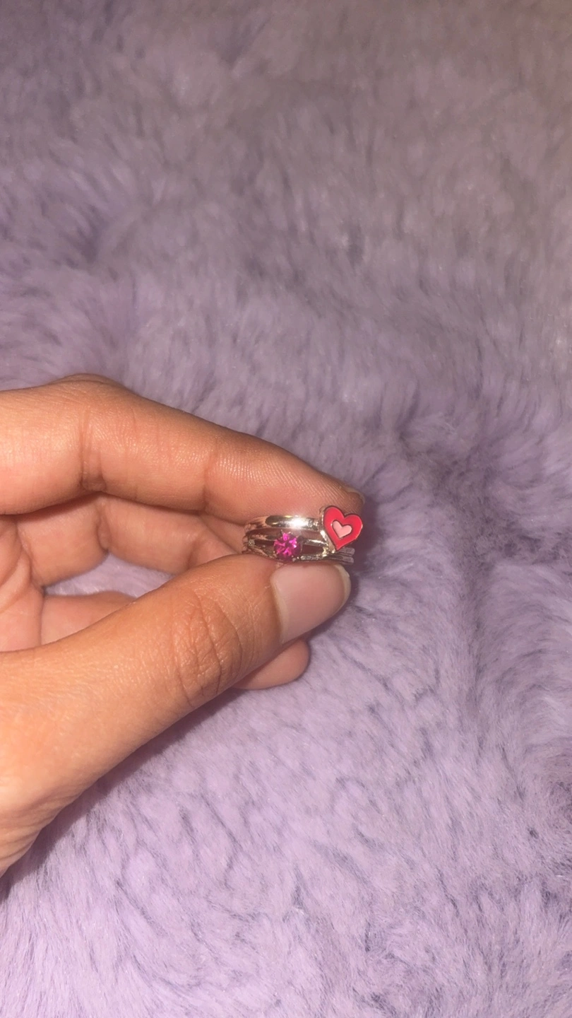 Cute silver ring with a red heart and pink gemstone detail! Perfect for adding a touch of sparkle to your everyday look small for a kid