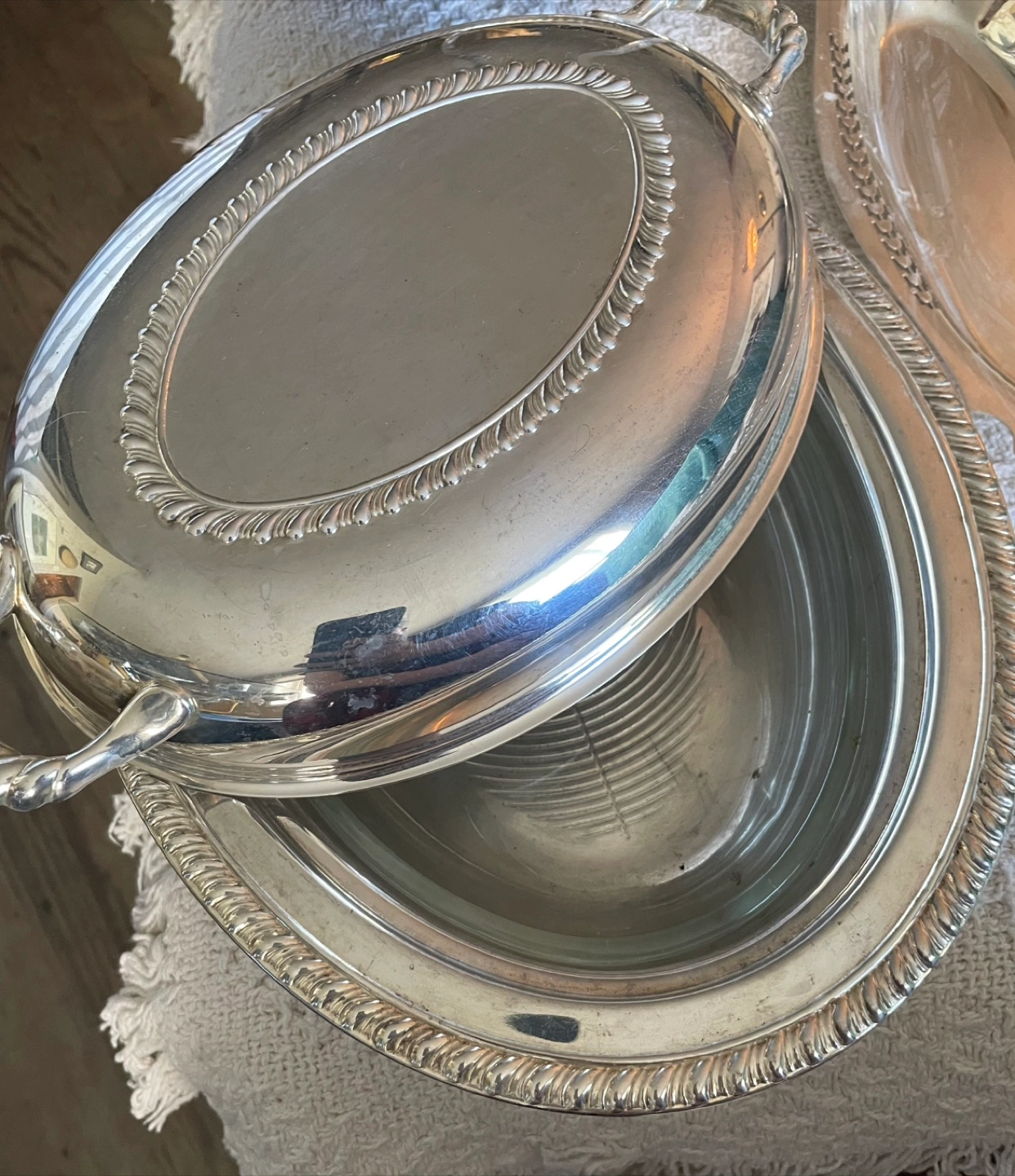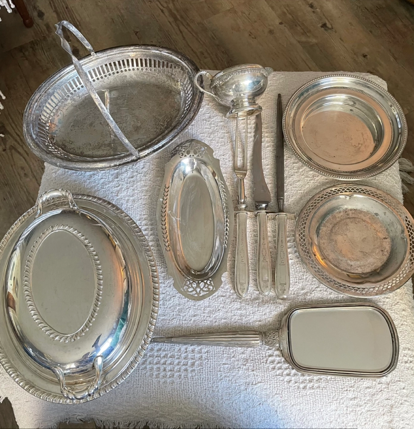 Selling a collection of vintage silver plated items . There are various shapes and sizes, perfect for adding a touch of elegance to your table setting. They would be great for serving appetizers, desserts, or for decorative purposes. Some pieces show signs of wear, adding to their vintage charm Located in Osborne Village with easy access to driveway for pickup . You will be purchasing a random bundle of various vintage silverplate items . 11 pieces all together . The oval serving dish has a lid and the glass insert ( which I purchased separately for 20.00) In various stages of polish. No measurements. I do have some pieces listed separately with some measurements. But this is a clearance price, so one must trust your instincts. Happy to accept etrans for guaranteed hold or cash FCFS . Please see my other listings if you wish to buy separately, but at this price it’s worth the entire bundle! Thanks
