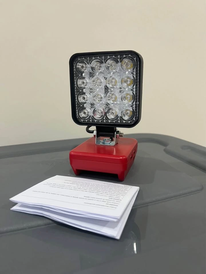 - Brand new never used special sale from $55 to $40 - Made from high grade Aluminum, 16 bright 8W LEDS powered by your M18 Milwaukee battery. - Great for the jobsite or lighting up the outdoors. - Long lasting run time, so you can rely on having light even when no power is available. BATTERY NOT INCLUDED