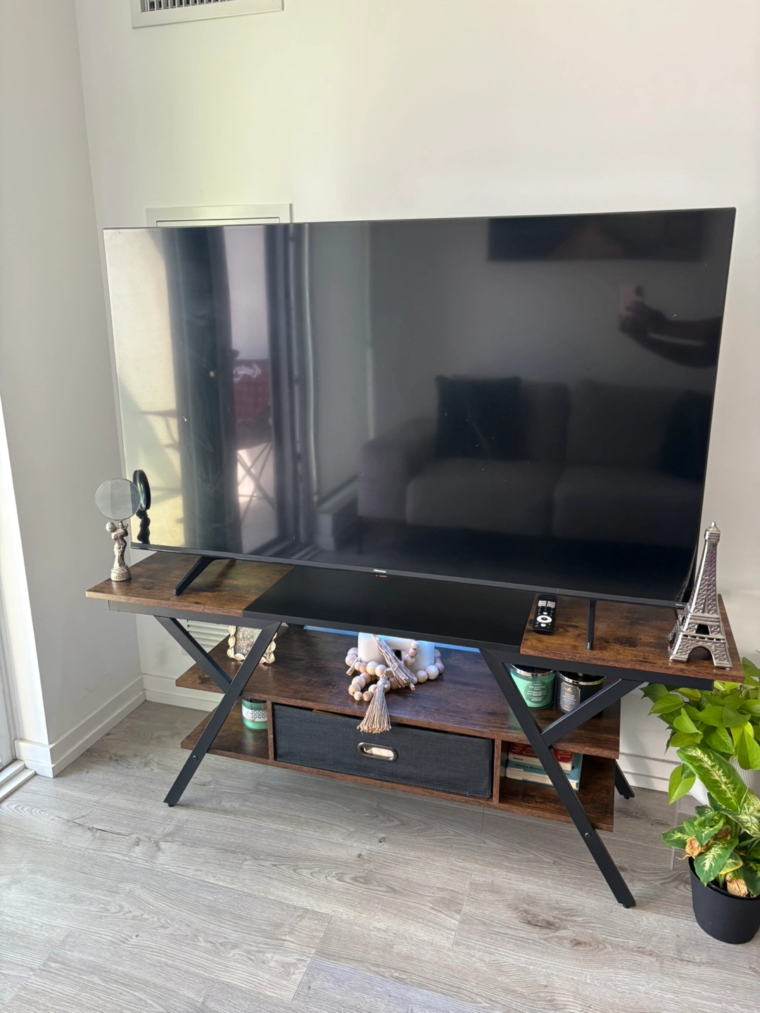 Selling a Hisense 58 inch smart TV and Wayfair tv stand . It's in great condition and ready for a new home! Perfect for streaming your favourite shows and movies. MOVE OUT SALE