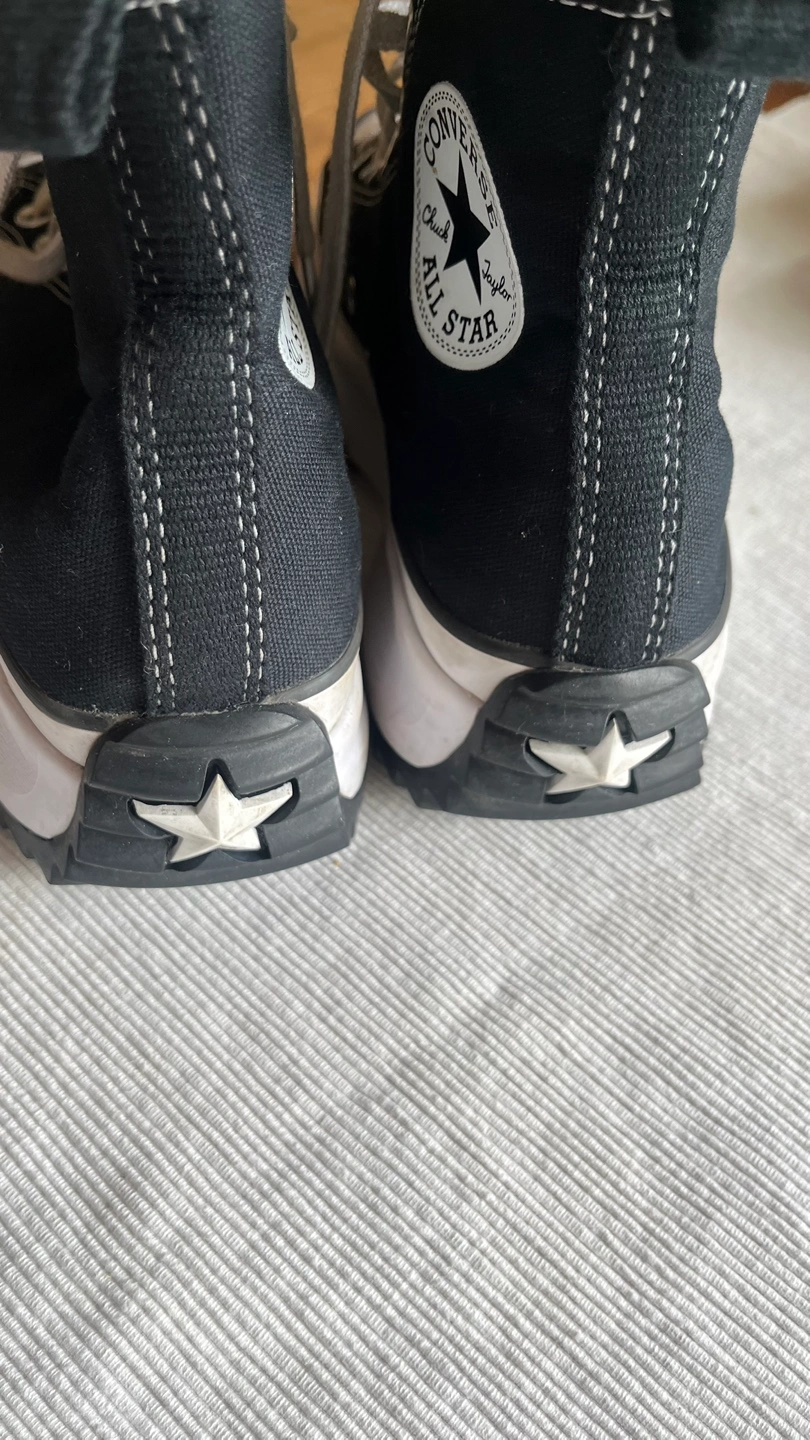 Selling a pair of Converse Run Star Hike High Top sneakers in black. These are in great condition and ready for a new home! They feature the classic Converse look with a modern, chunky platform sole. Men’s Size 7 Women’s Size 8.5