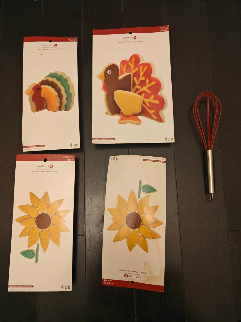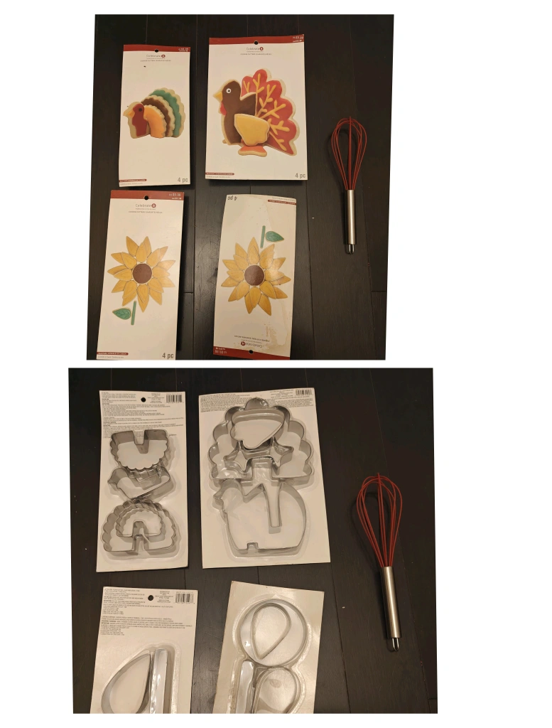 two brand new cookie cutter to create turkey and sunflower shape for $10 large size, not mini cookie size eggbeater included pick up beside oak ridges public school