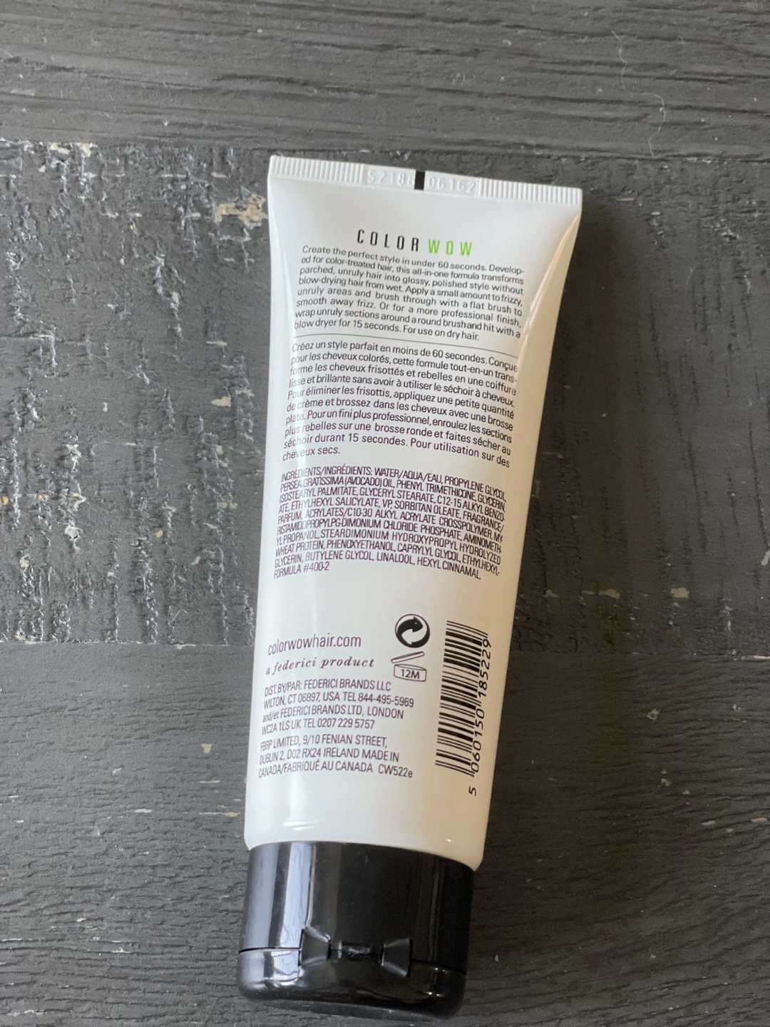 Selling a Color Wow One-Minute Transformation styling cream! This cream instantly remoisturizes and eliminates frizz. It comes in a 120 ml (4.0 FL OZ) size. A perfect product for color-treated hair, it develops a long-lasting hair. Apply to dry hair and style without brushing. For a more professional style, apply evenly and hit with a wrap until dry