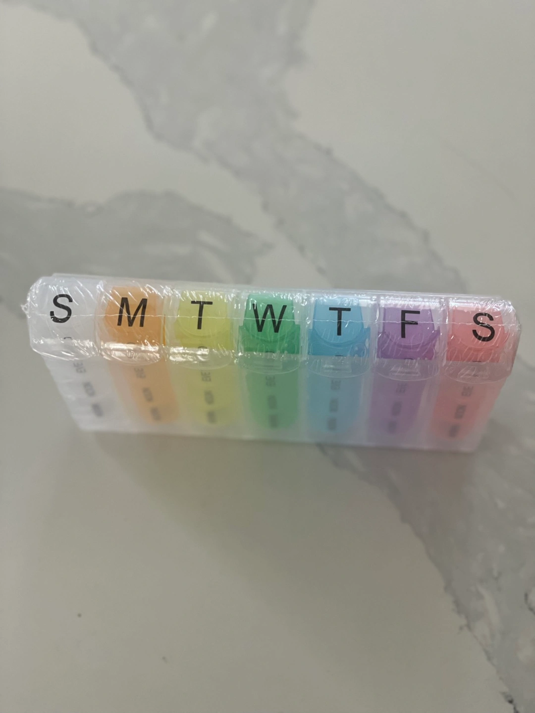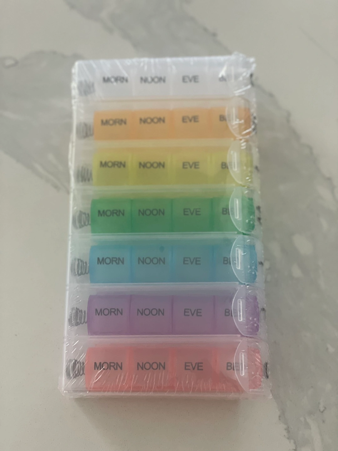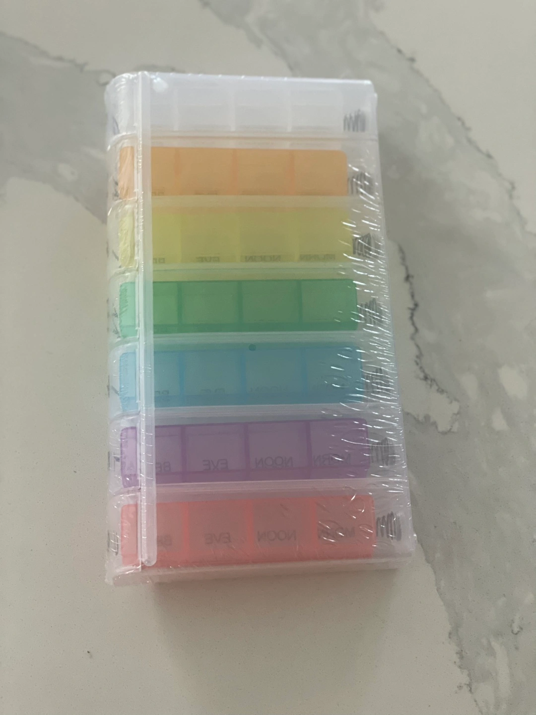 Brand new rainbow pill organizer! It has compartments for morning, noon, and evening for each day of the week. It's perfect for keeping your medications or supplements organized.