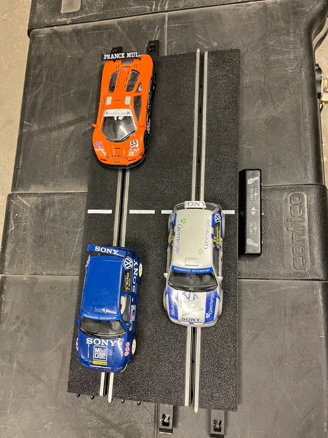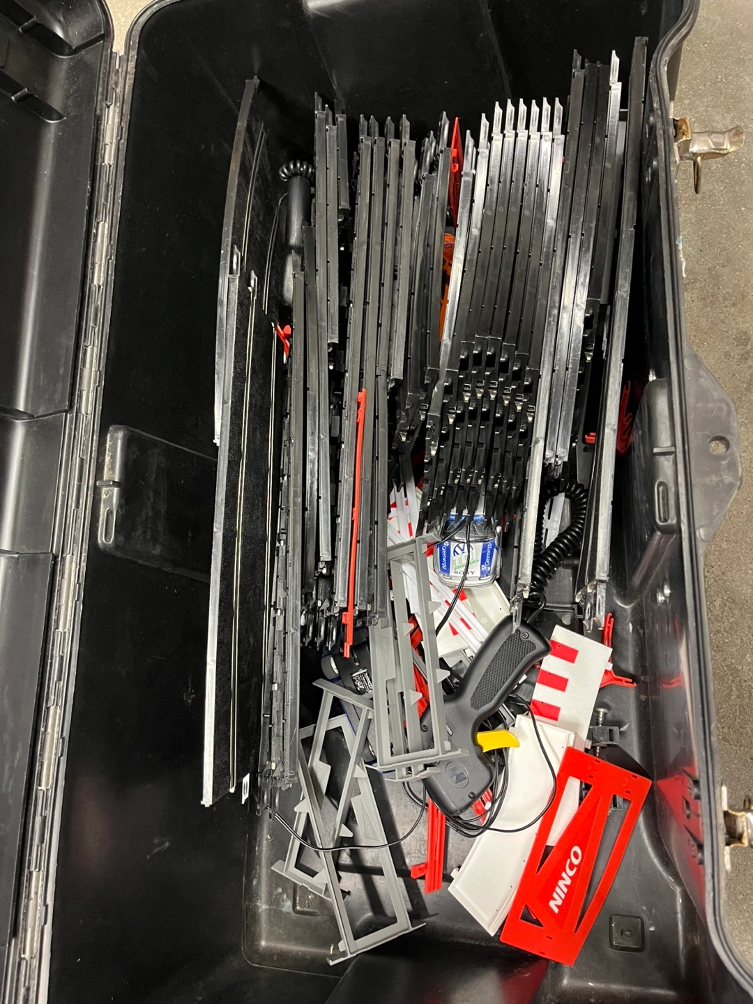 Selling a NINCO slot car racing set! It includes a variety of track pieces, controllers, and cars. Perfect for some fun racing action!