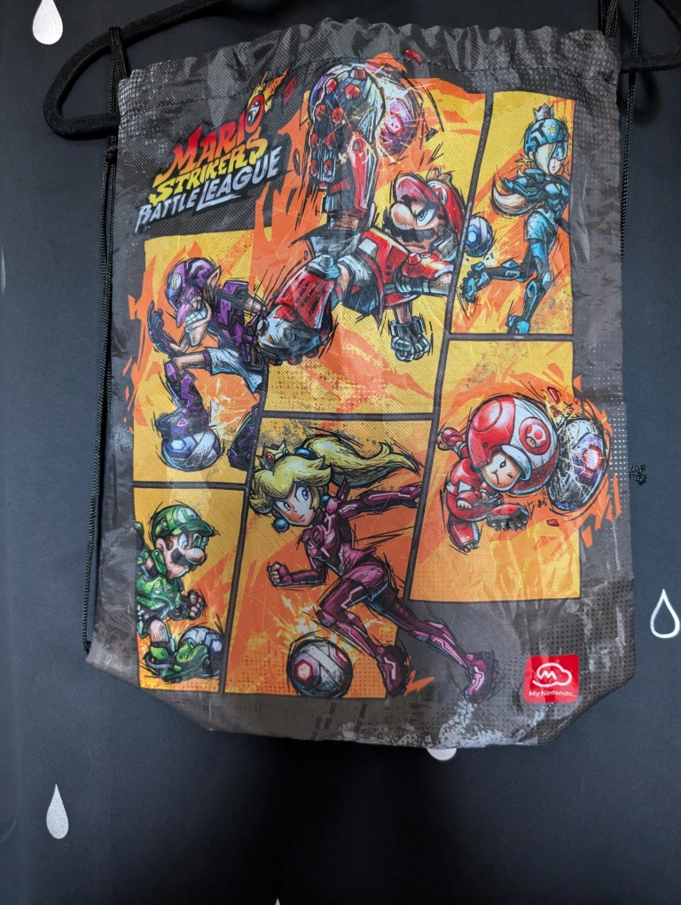 Check out this cool Nintendo Mario Strikers Battle League drawstring bag! It's perfect for carrying your gear showing off your love for the game. It is a My Nintendo exclusive and can not be purchased elsewhere that I am aware of. It is 17" x 14 " single pocket. great for collectors.