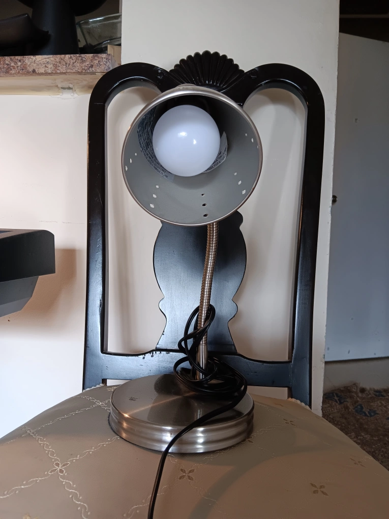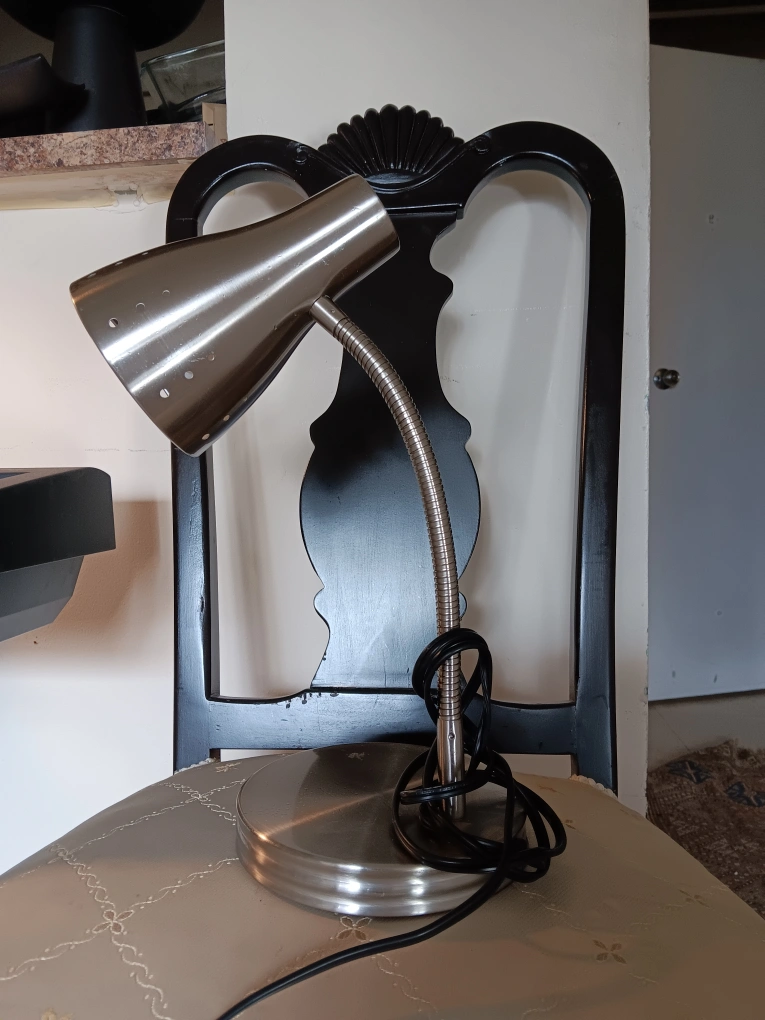 Selling a silver desk lamp. It's in good condition and perfect for a desk or bedside table. Tap to go on and off. Pick up only